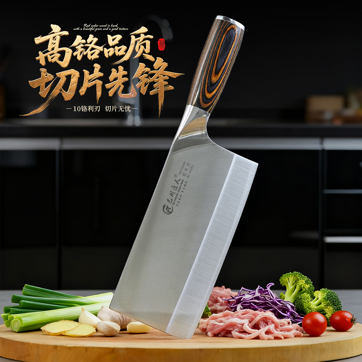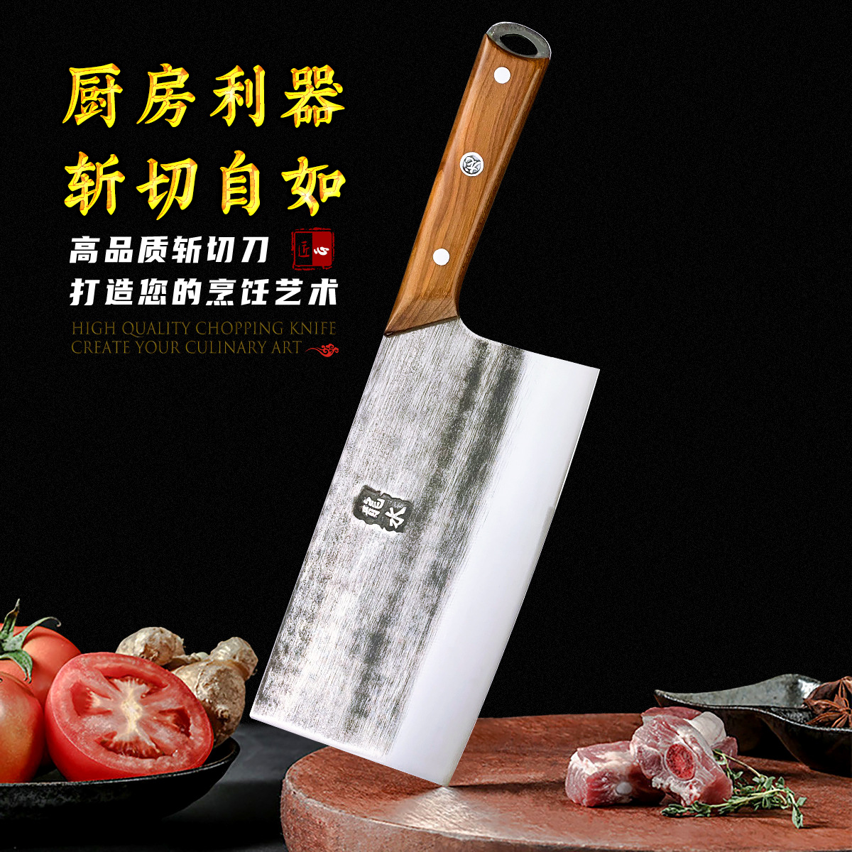 巴川匠人锻打菜刀高锰钨钢家用厨房厨师切片刀切菜切肉刀桑刀开刃