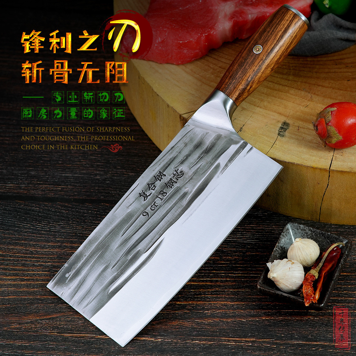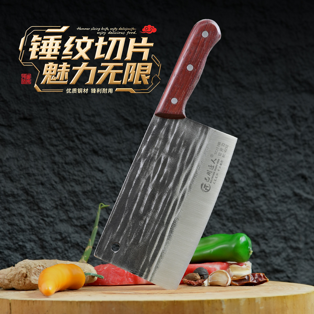 大足手作業ハンマー包丁キッチン家庭用ステンレススライシングナイフ赤木柄耐久性のあるナイフ代発卸売り