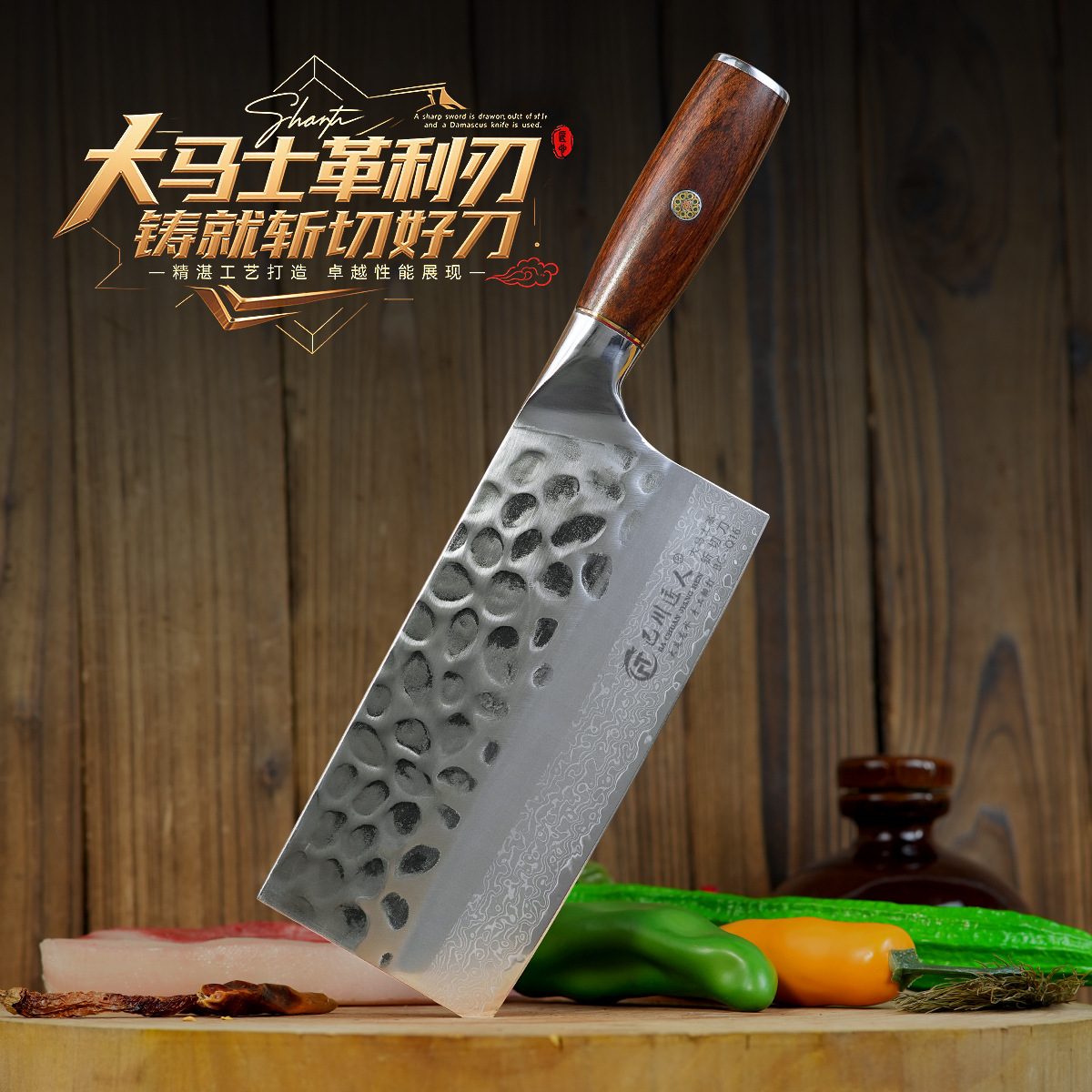 龍水鍛造千層鋼包丁ダマスカスキッチン専用包丁巴川職人槌目肉切り包丁包丁