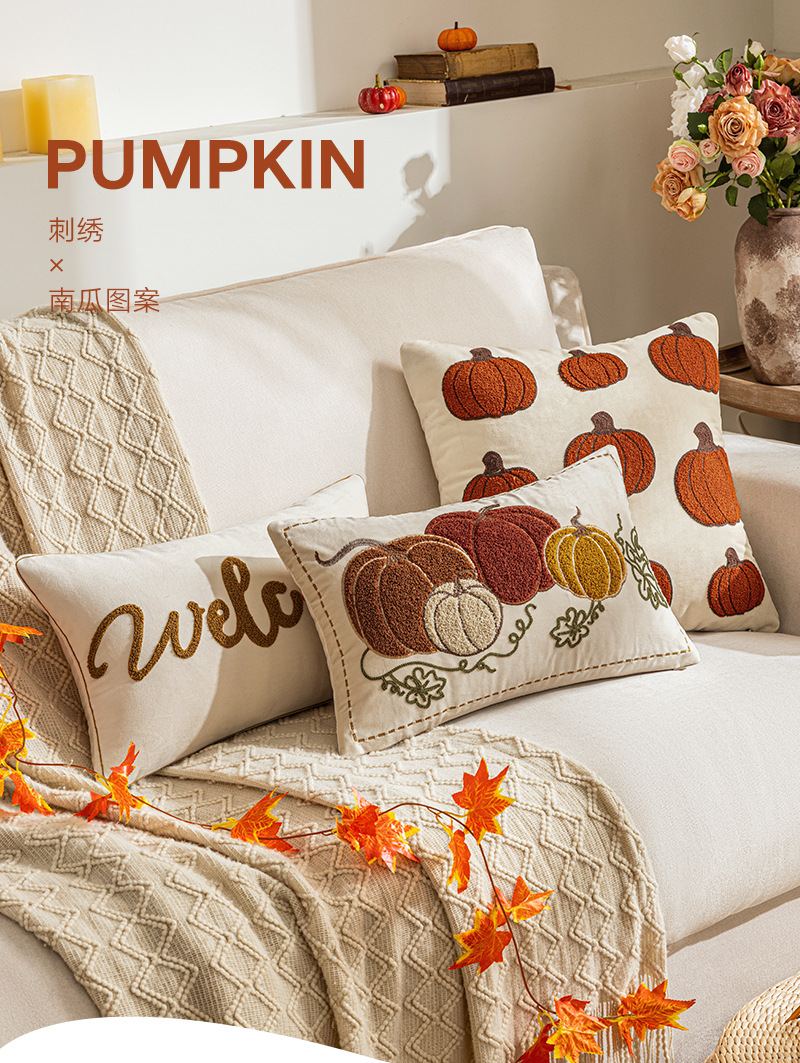 外贸跨境南瓜绣花万圣节抱枕套腰靠亚马逊速卖通热销款客厅沙发