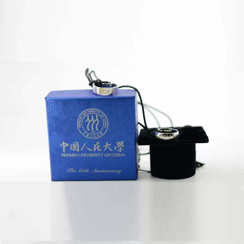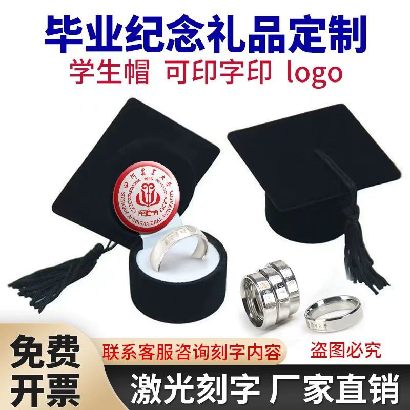 学校卒業記念リング刻印ロゴチタン鋼リングメーカー卸売卒業記念リングギフトボックス付き
