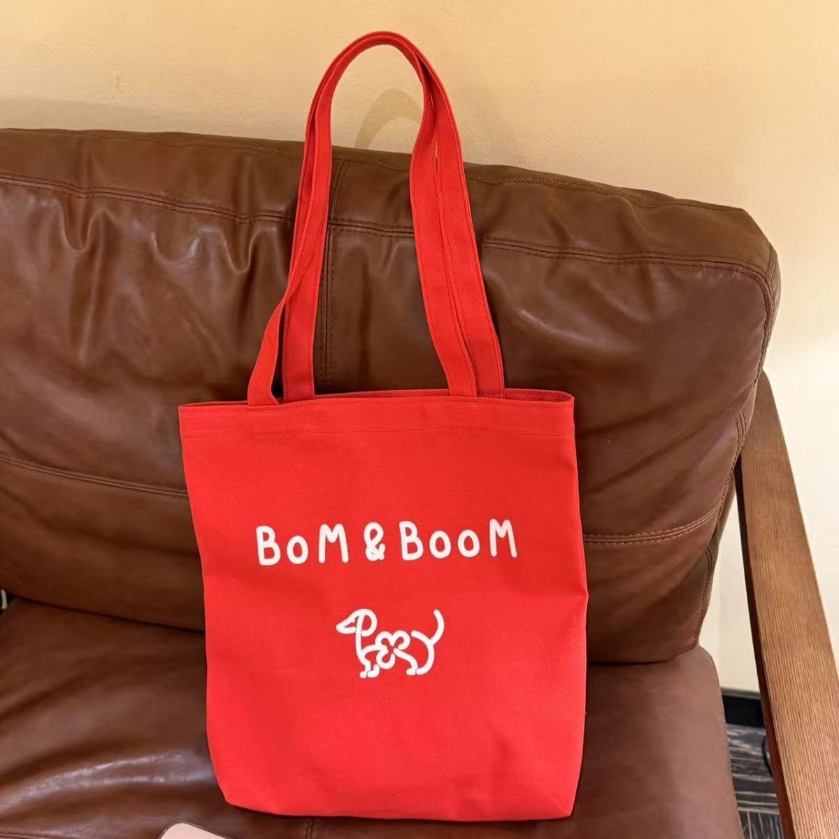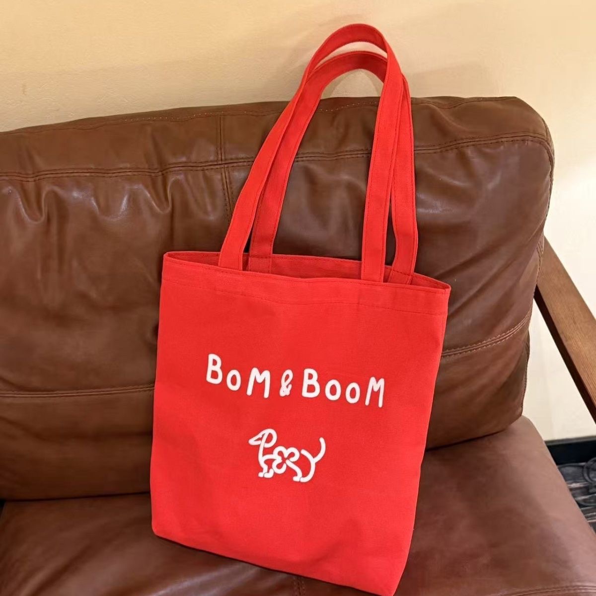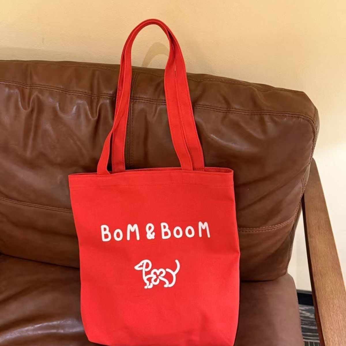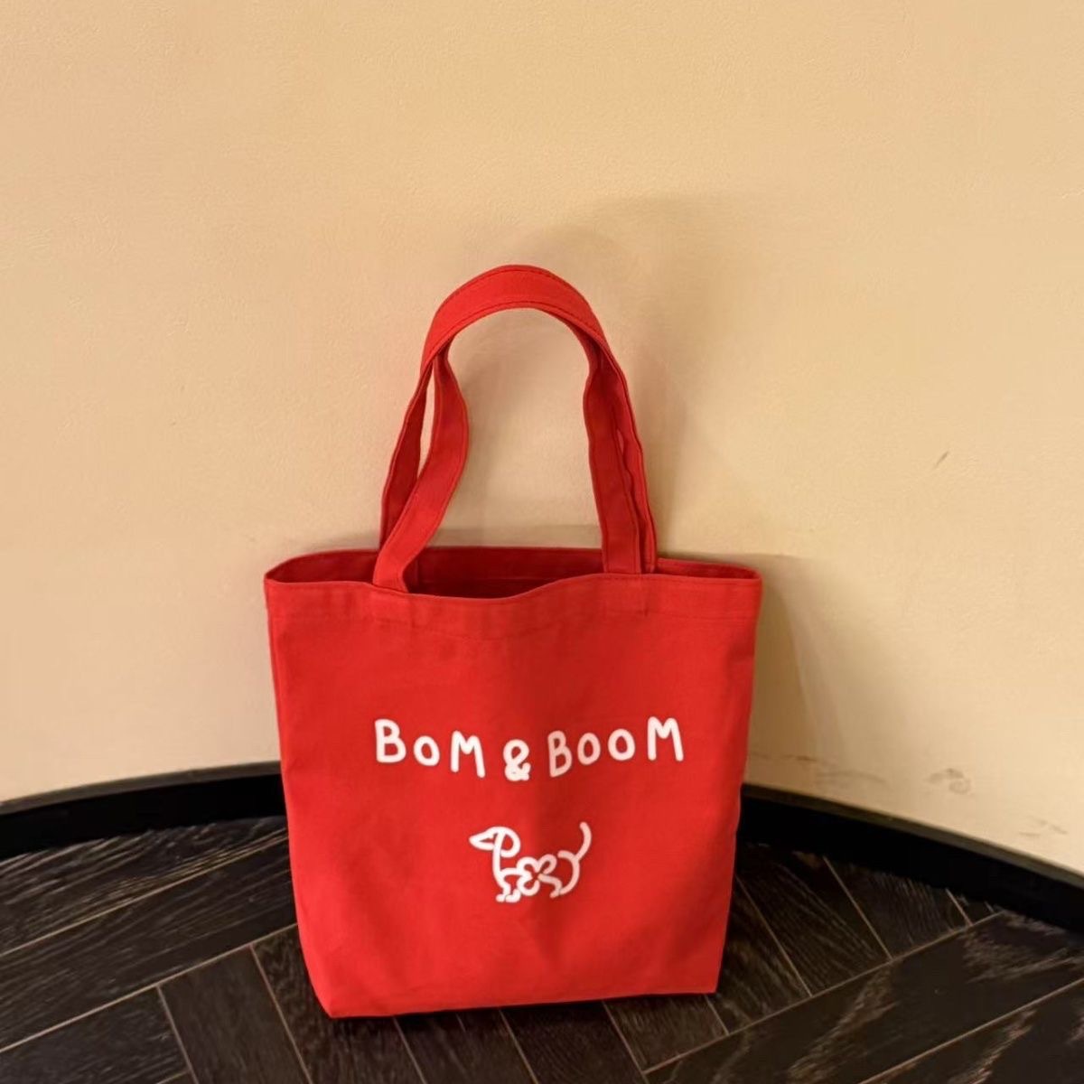 新しい Bom&Boom 韓国スタイル多用途レターショルダーバッグキャンバスショルダーバッグプリント子犬ショルダーバッグショッピングバッグ