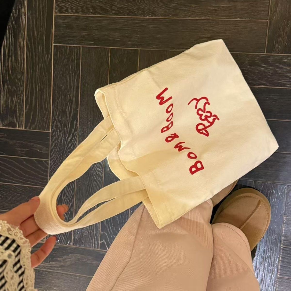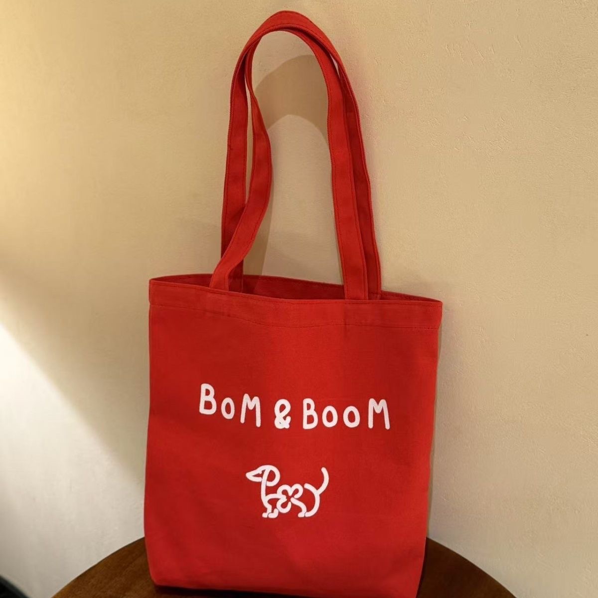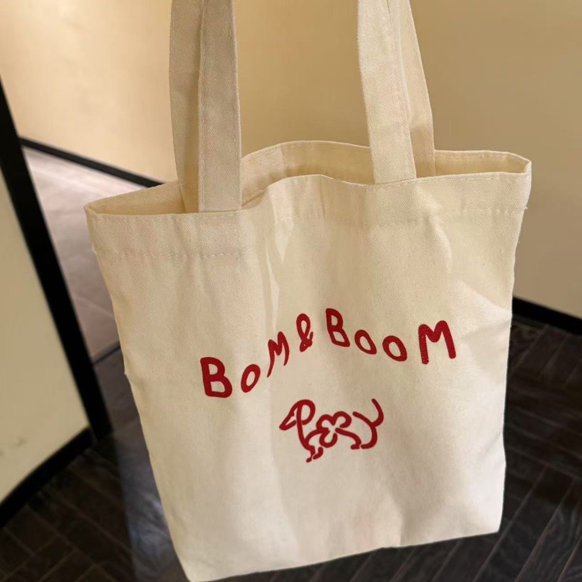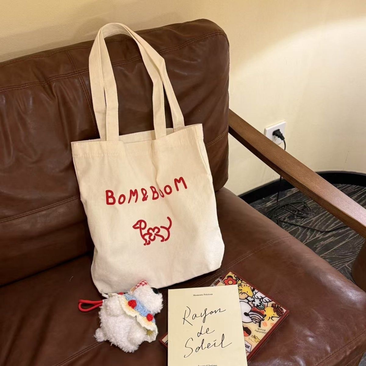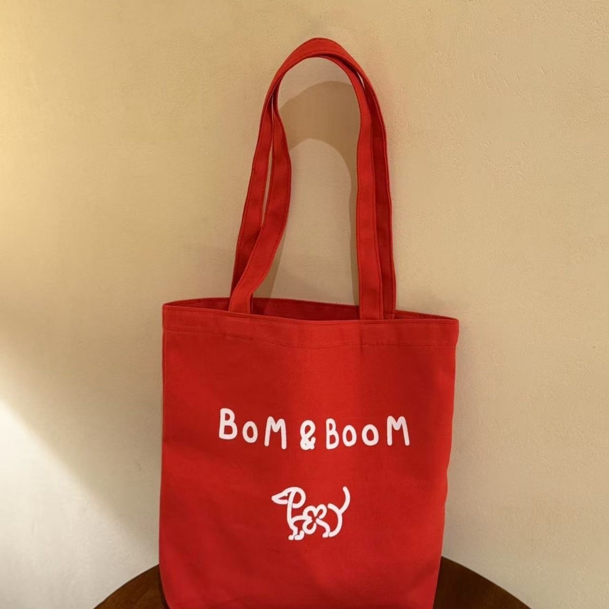 新しい Bom&Boom 韓国スタイル多用途レターショルダーバッグキャンバスショルダーバッグプリント子犬ショルダーバッグショッピングバッグ