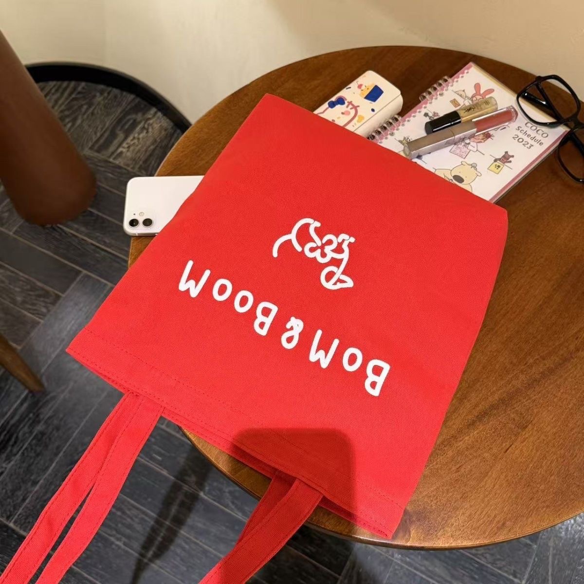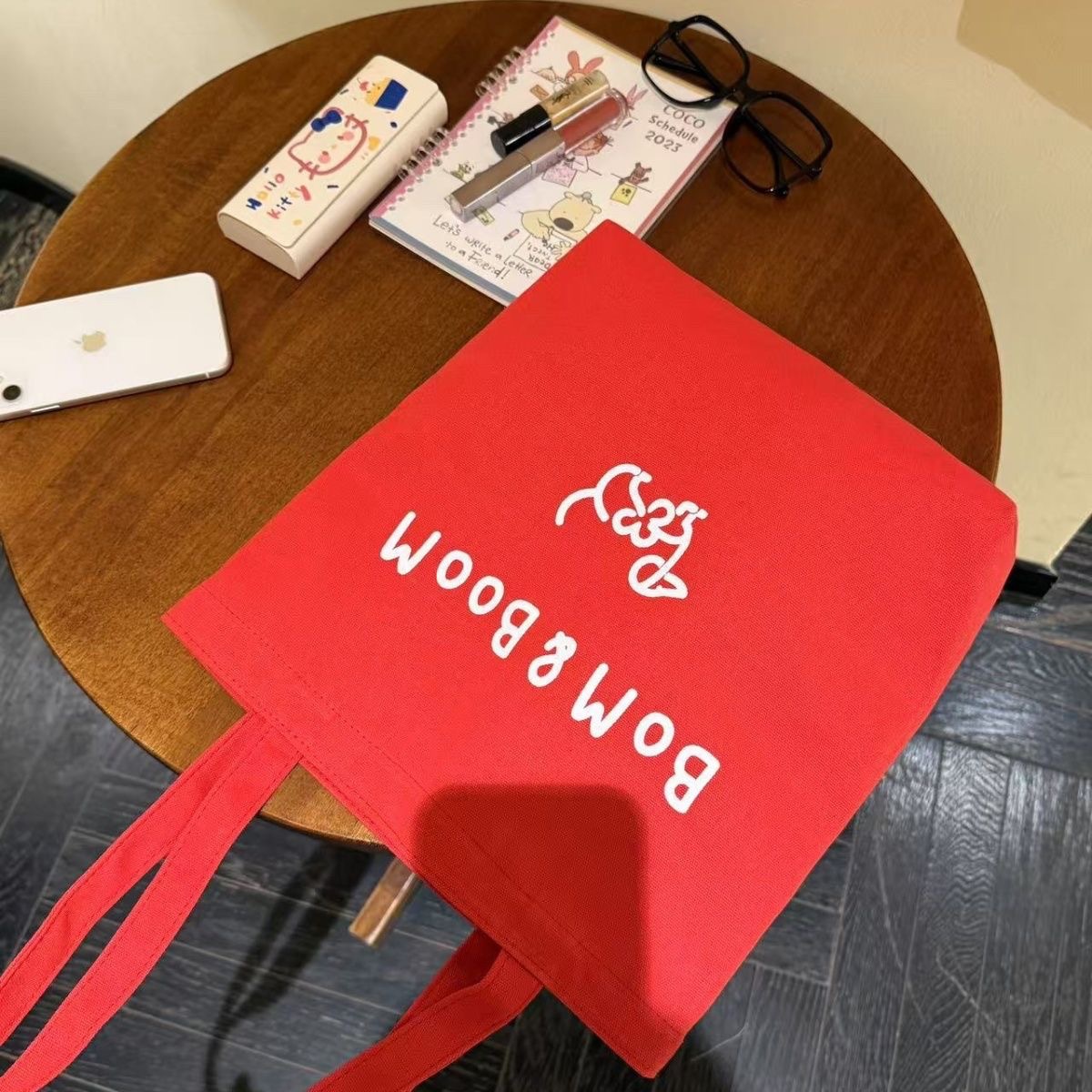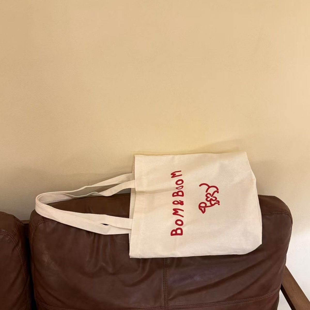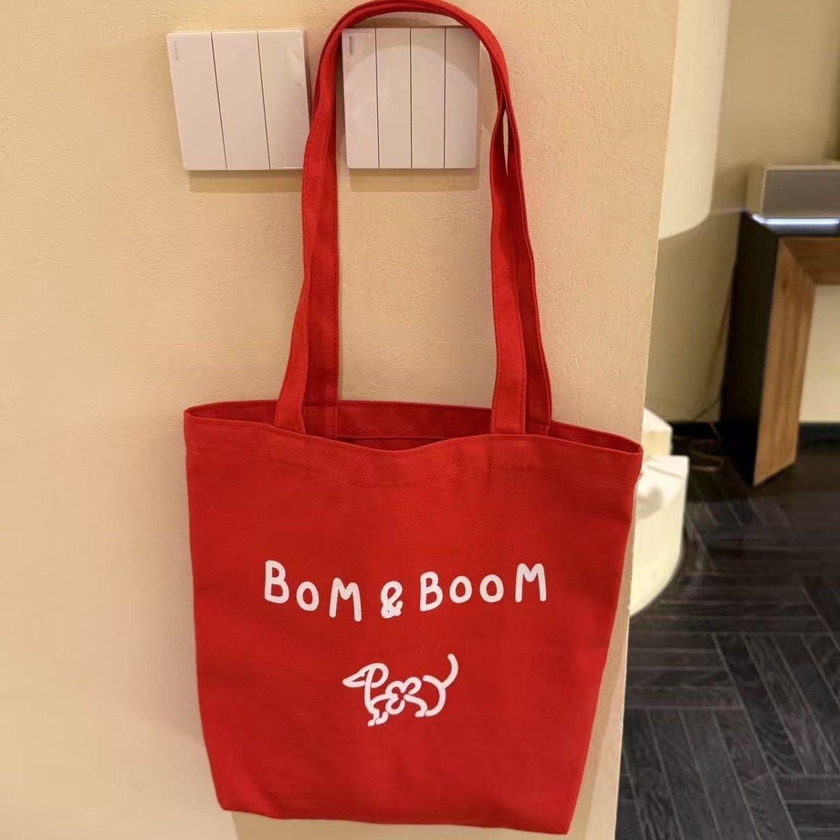 新しい Bom&Boom 韓国スタイル多用途レターショルダーバッグキャンバスショルダーバッグプリント子犬ショルダーバッグショッピングバッグ