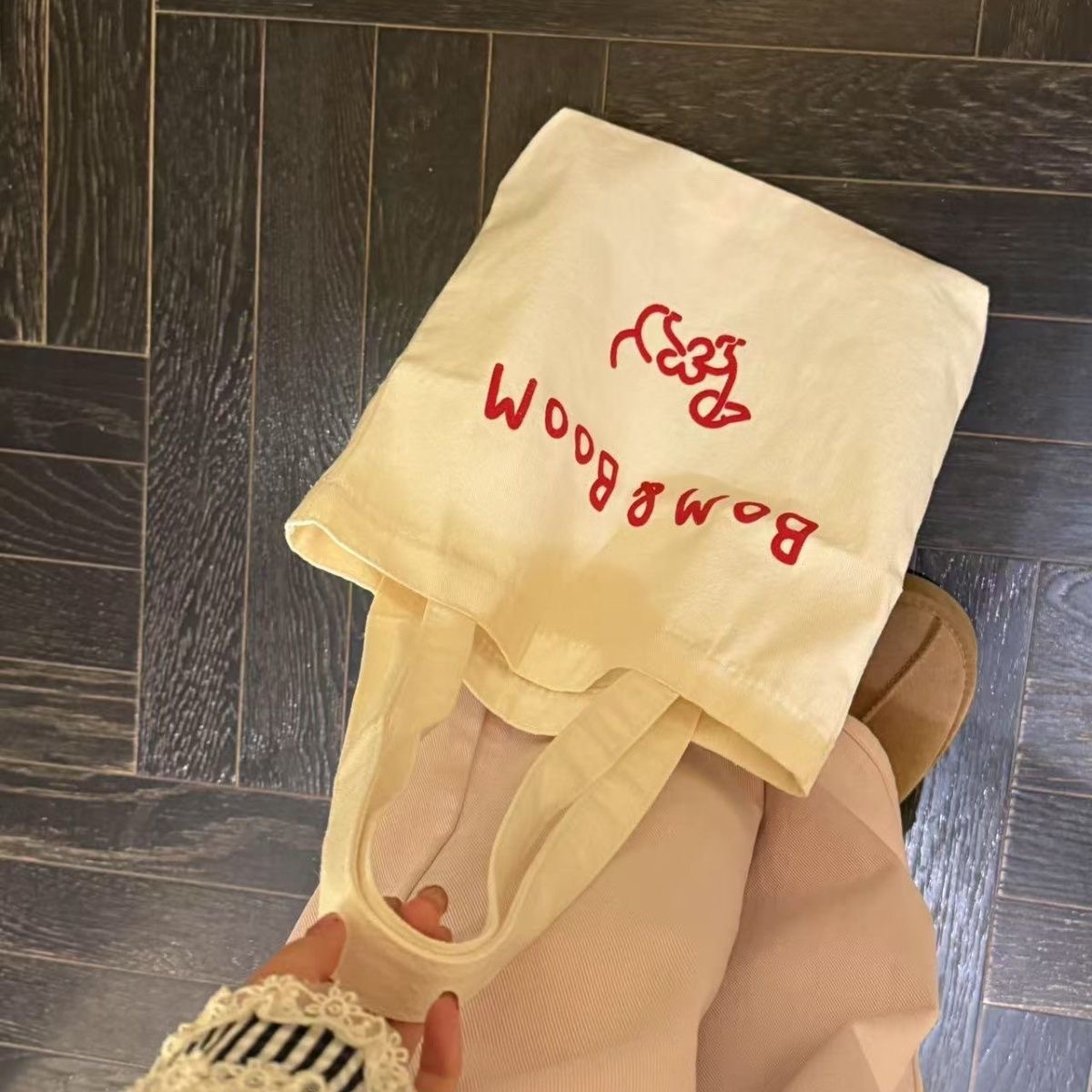 2025起爆金韓風八乳手提げ小布袋韓国ins博主シンプルアルファベット手提げミニ布包