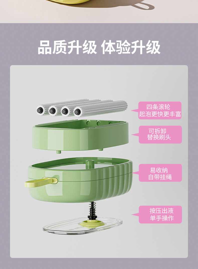 按压出液洗衣刷家用多功能软胶滚轮起泡快丰富贴身衣物内衣清洁刷