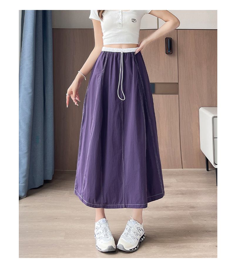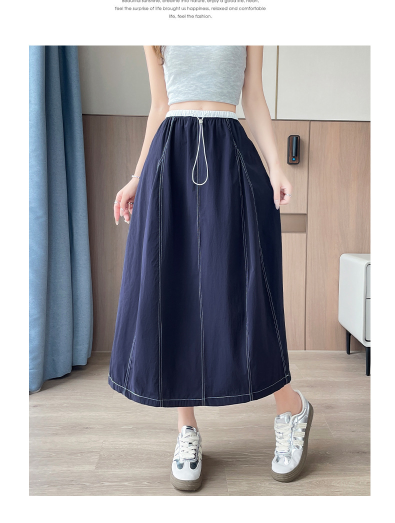 韓国風コントラストカラーステッチAラインワークスカート2025夏新作万能ニッチハイエンドパンプキンスカート