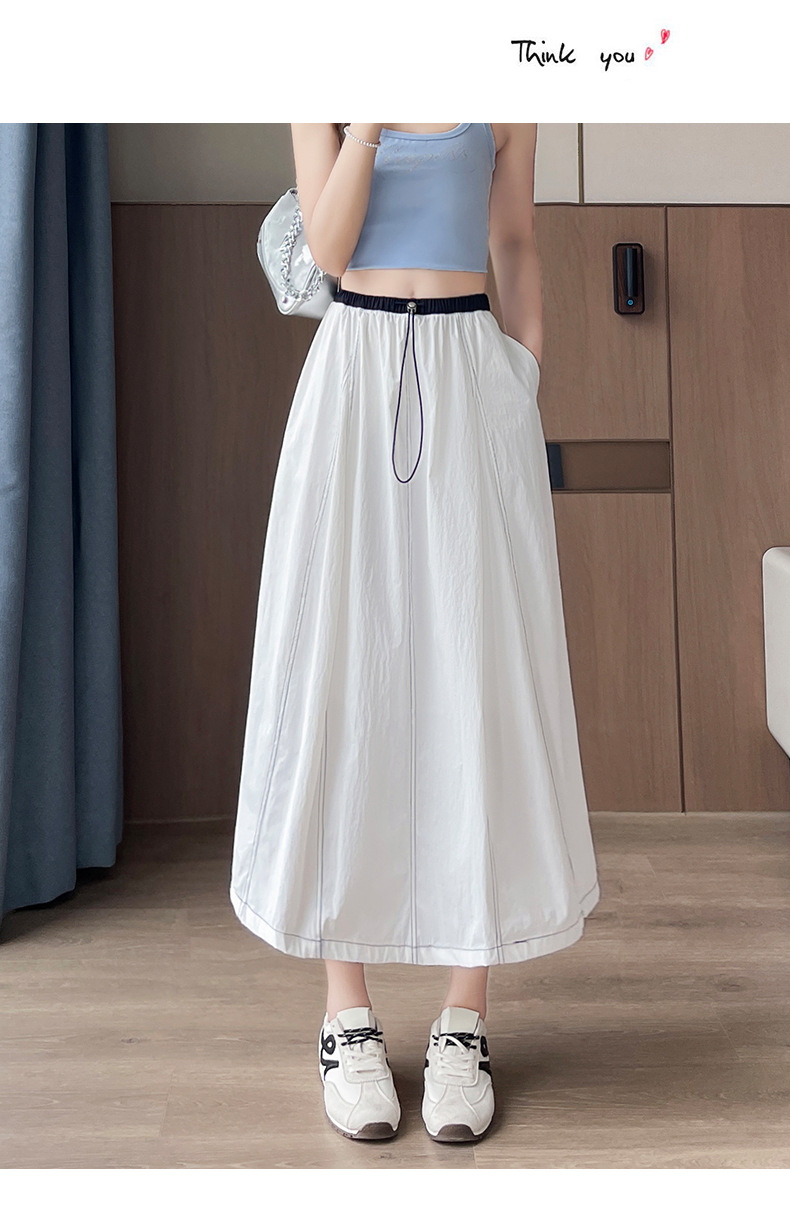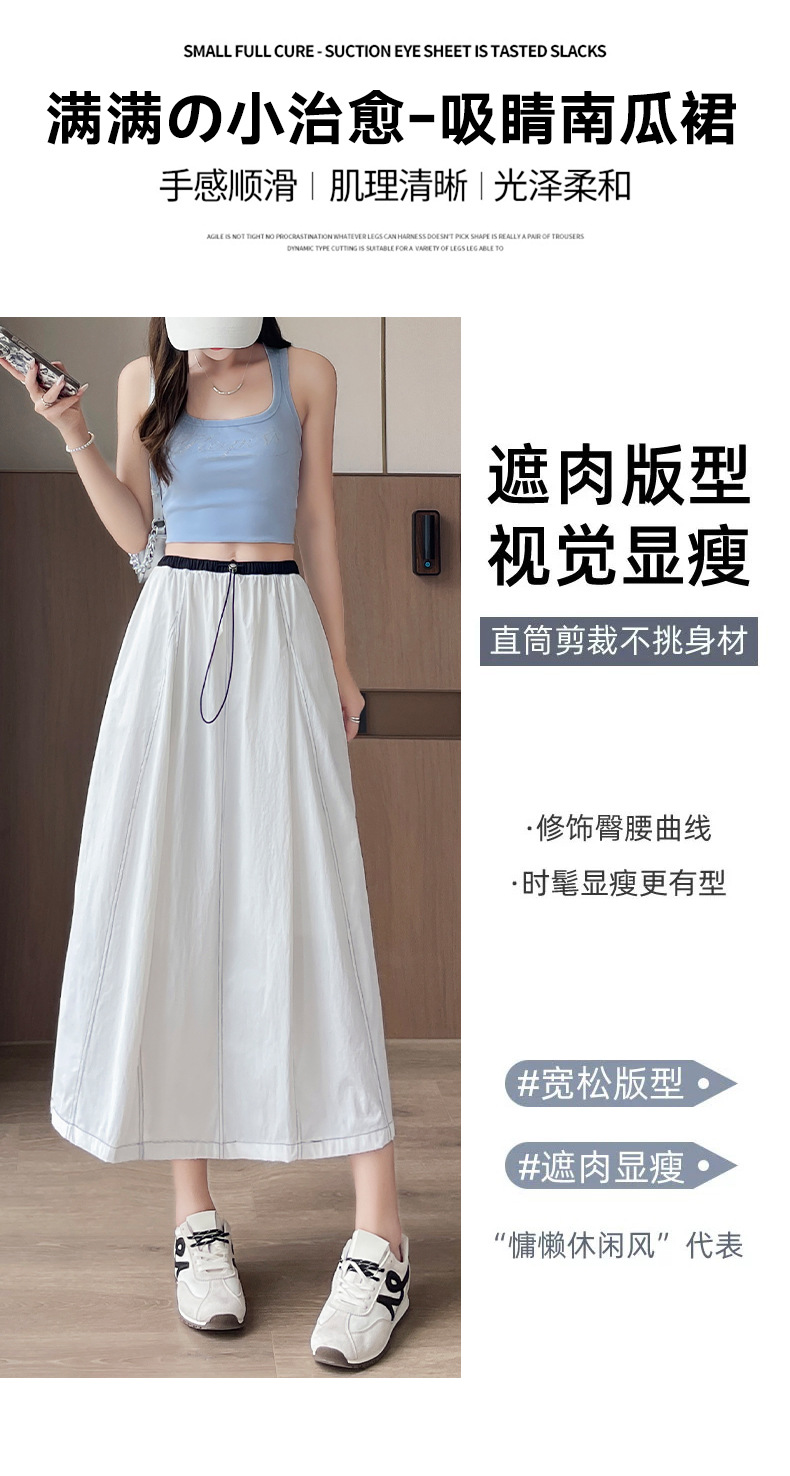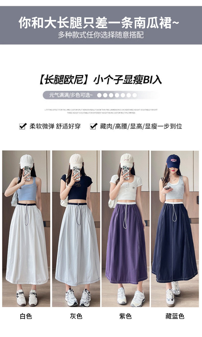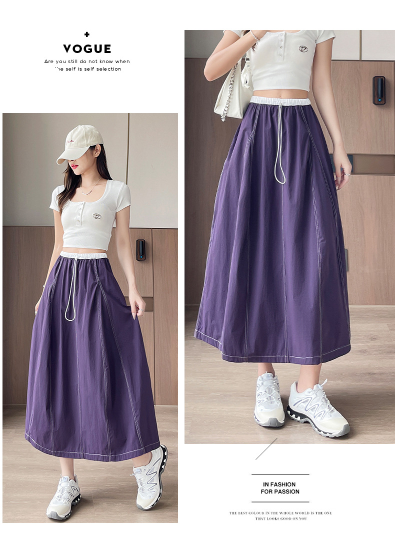 ルルと同じスタイルの女性用サマースカート、巾着ワンステップスカート、エアレイヤーカジュアルスポーツロングスカート、両側にスリットとポケットが付いています。
