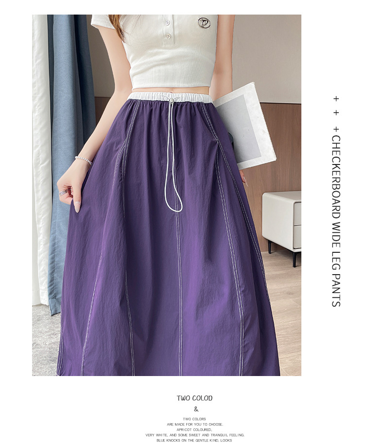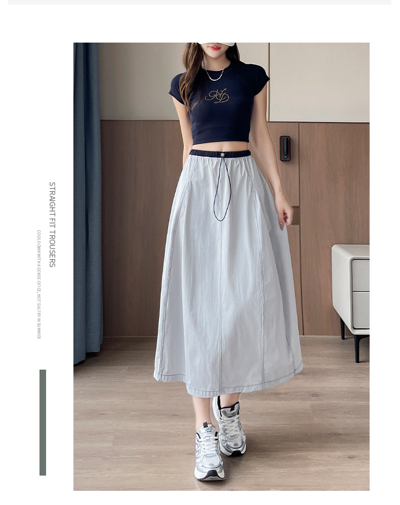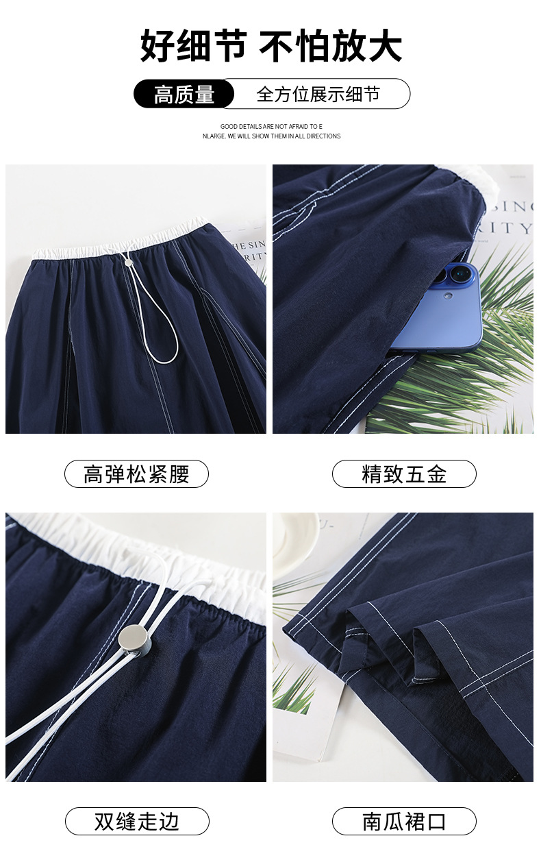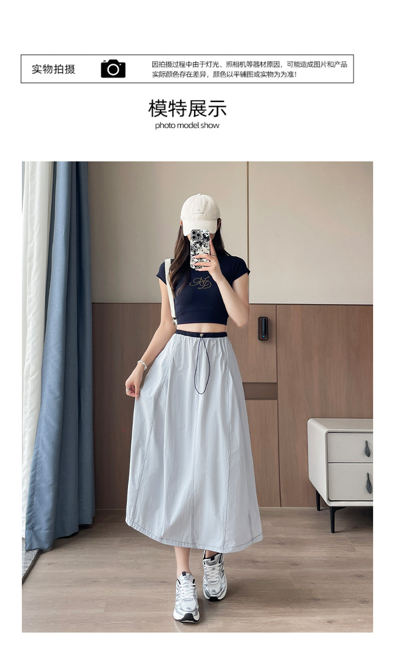 ルルと同じスタイルの女性用サマースカート、巾着ワンステップスカート、エアレイヤーカジュアルスポーツロングスカート、両側にスリットとポケットが付いています。