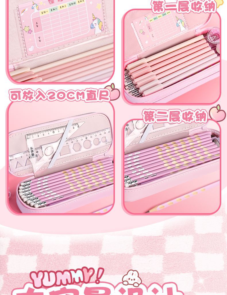 Kaba Bear 学生筆箱新しい女の子の見栄えの良い筆箱大容量二層文具箱女の子文具バッグ