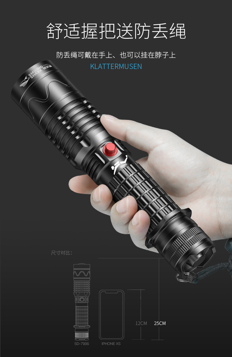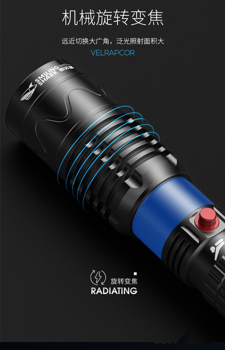 笑顔サメ屋外ミニハイライト懐中電灯持続持続持続usb急速充電多段階調節機能