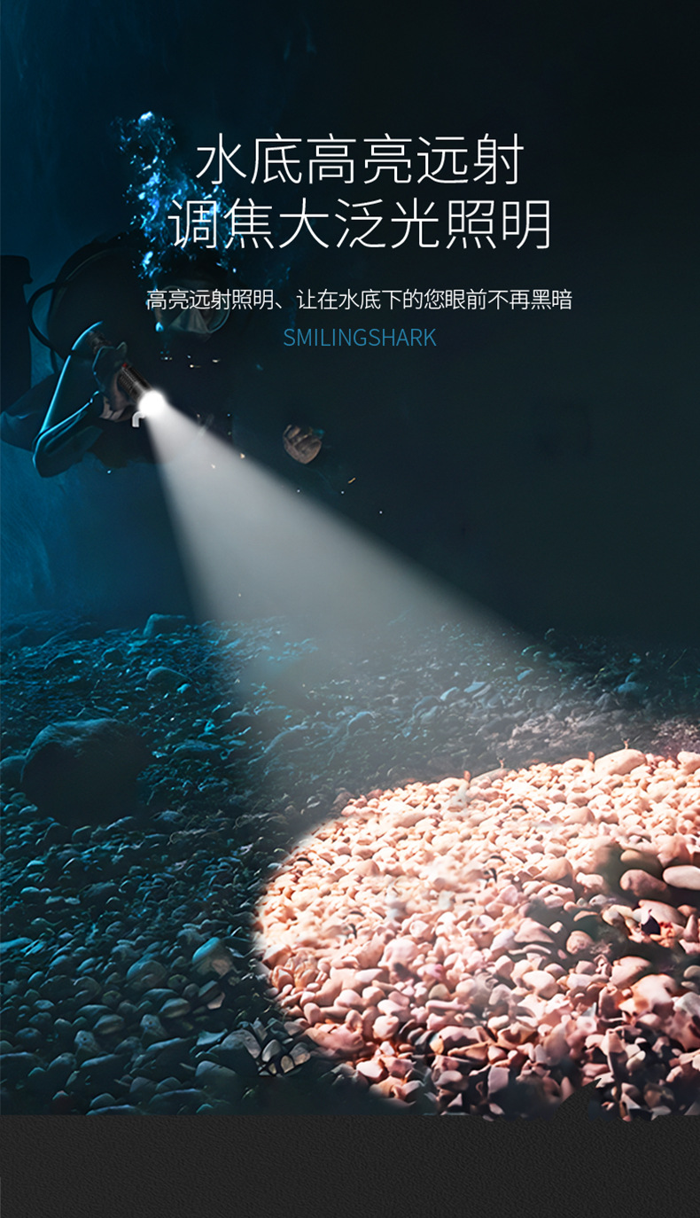 クロスボーダーブライトズームアルミ合金ダイビング懐中電灯アウトドアアドベンチャーポータブル水中照明ダイビング懐中電灯