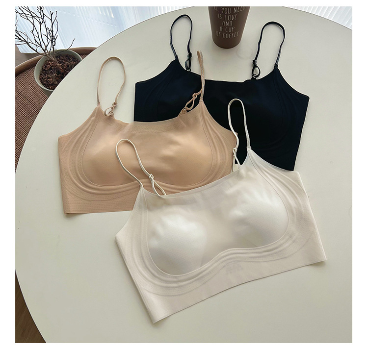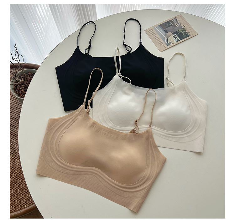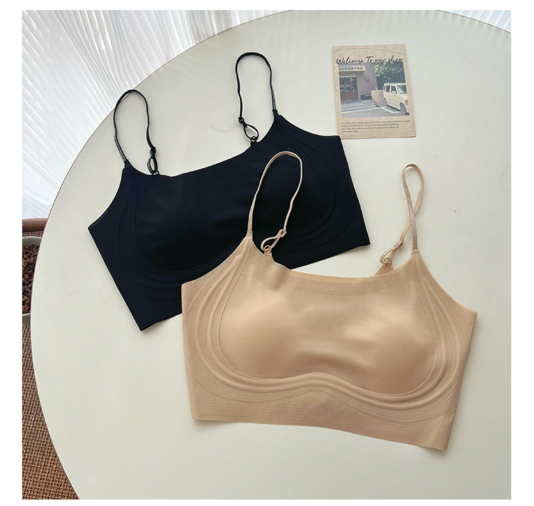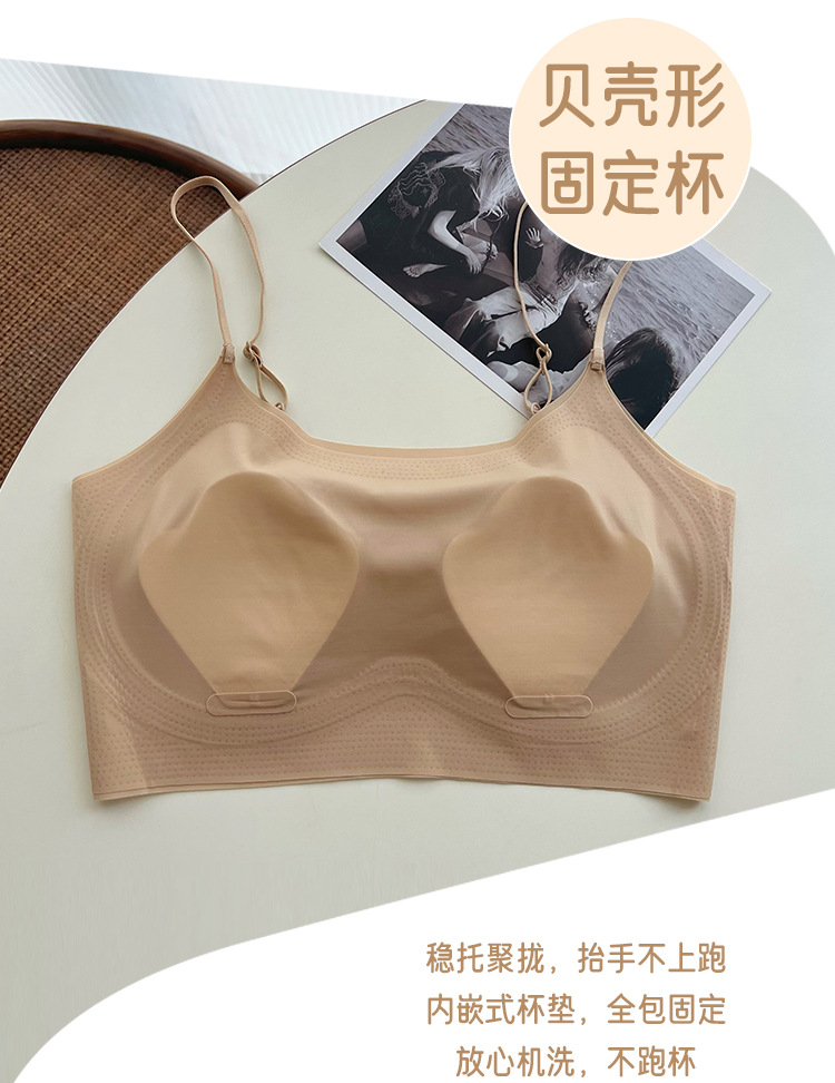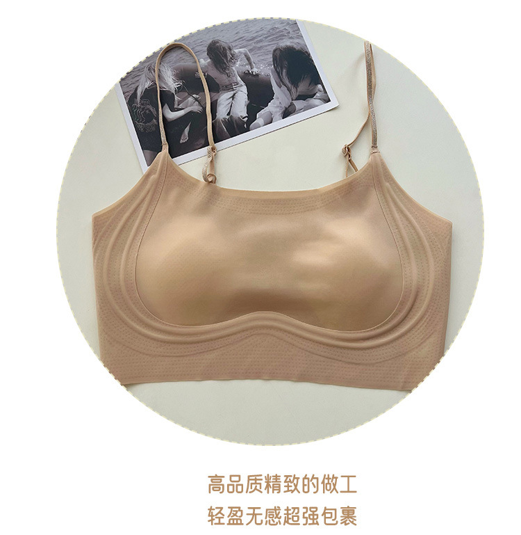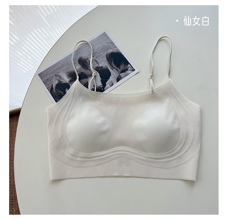 夏用アイススキンクールシームレスサスペンダー下着、大きな胸の女の子用、通気性のあるシェルカップ、細いストラップ、オフショルダー、美しい背中の女の子用