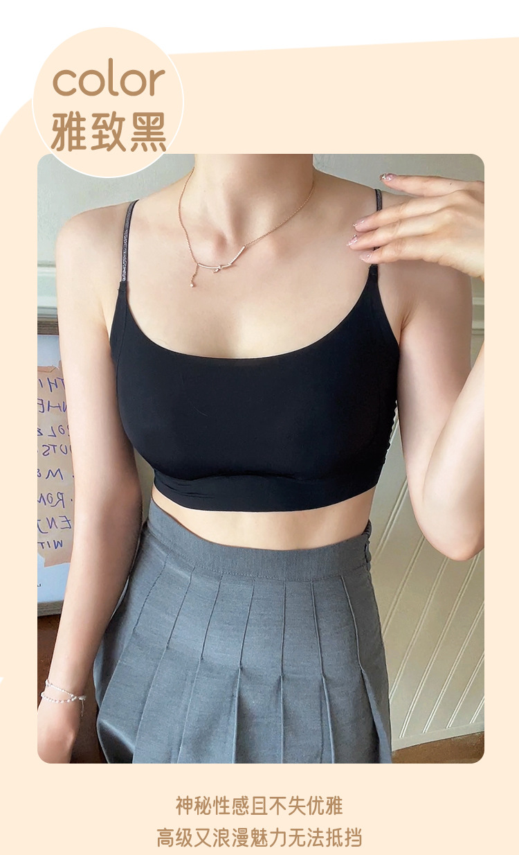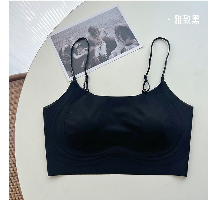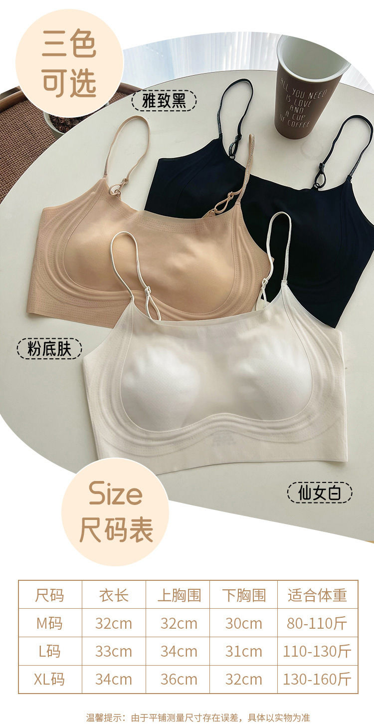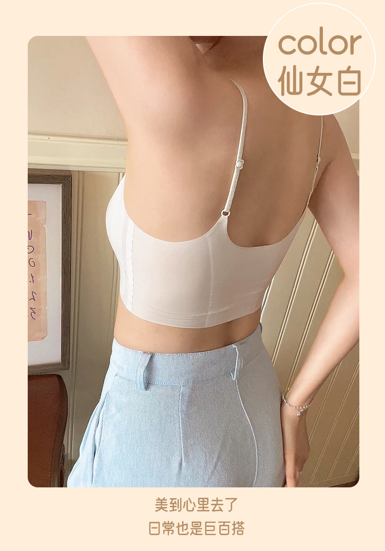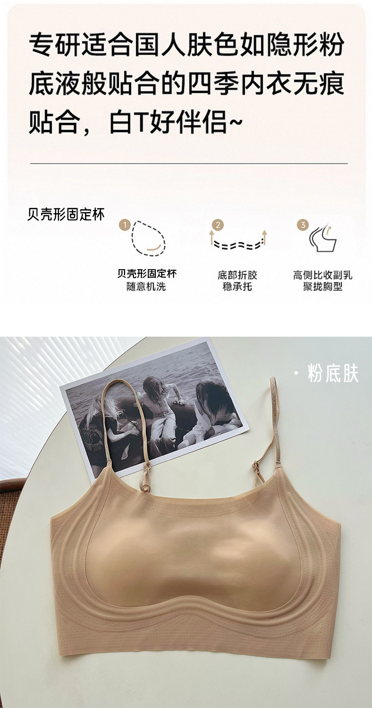 夏用アイススキンクールシームレスサスペンダー下着、大きな胸の女の子用、通気性のあるシェルカップ、細いストラップ、オフショルダー、美しい背中の女の子用