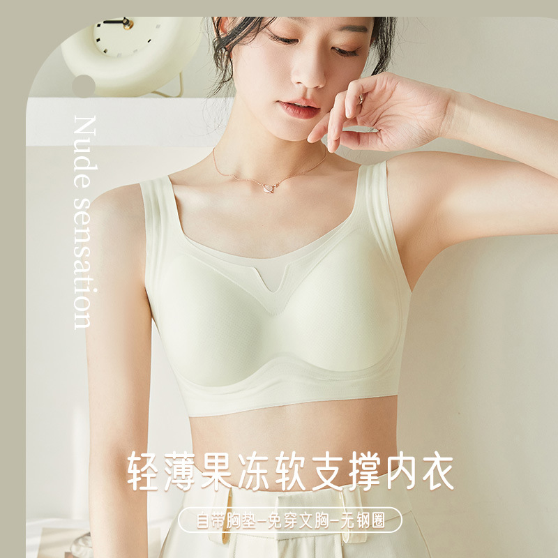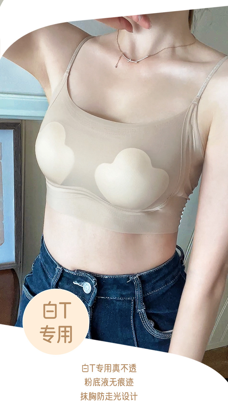 女性用超薄型シームレスインビジブルクラウドセンス下着、ワンピースシェルカップ、大きな胸が小さく見える、軽くて通気性があり涼しい、美しいバックサスペンダー