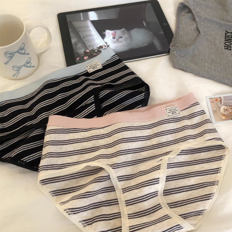 "阳光多巴胺"条纹运动风10A抑菌纯棉内裤女透气加长裆少女三角裤