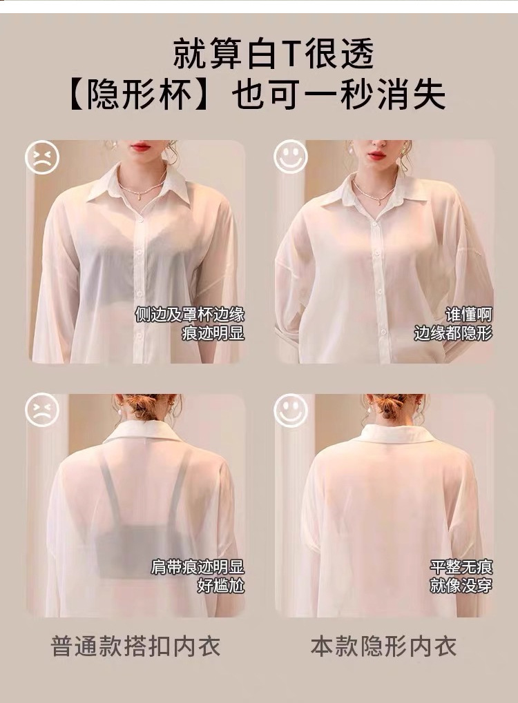 薄いストラップオフショルダー新しい超薄型クールシームレスサスペンダー下着女性のプッシュアップ通気性シェルカップシームレス目に見えない美しい背中