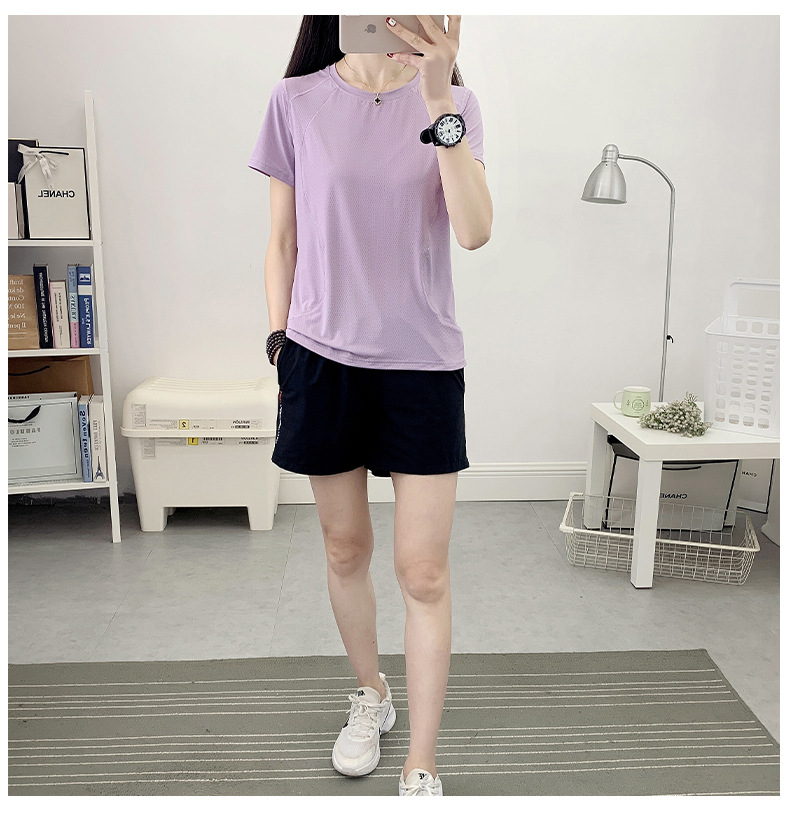 女性用スポーツトップス、夏用ルーズランニングフィットネス半袖Tシャツ、女性用ハイエンドピラティストレーニングヨガウェア