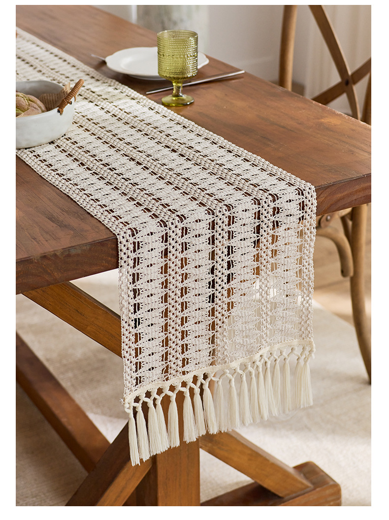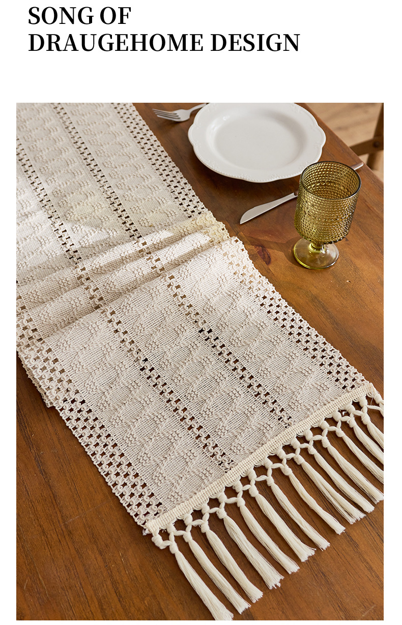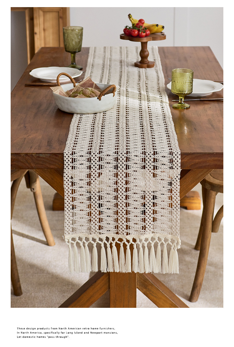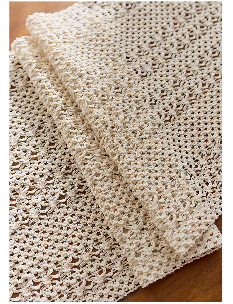 アメリカンテーブルフラグ綿無地中空手結びタッセル織りロングテーブルクロスホリデーデコレーションベッドサイドタオル