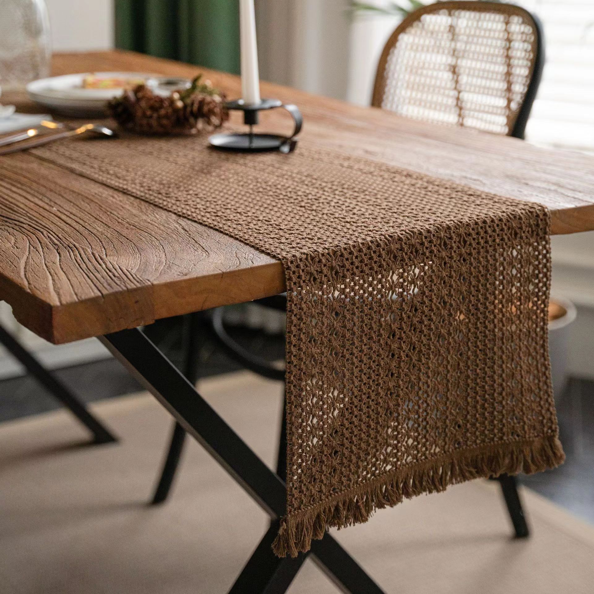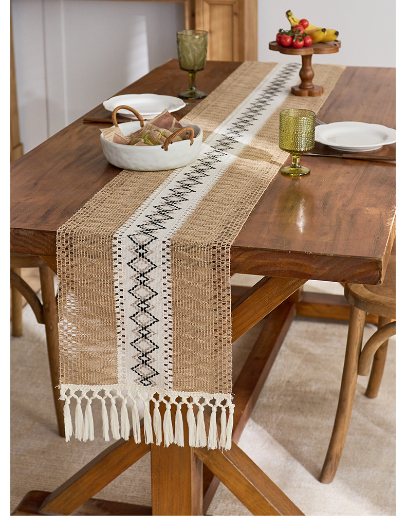 クロスボーダー熱売綿麻テーブル旗ボヘミアン風結び流蘇アメリカ式軽贅沢高級感祝日食卓装飾