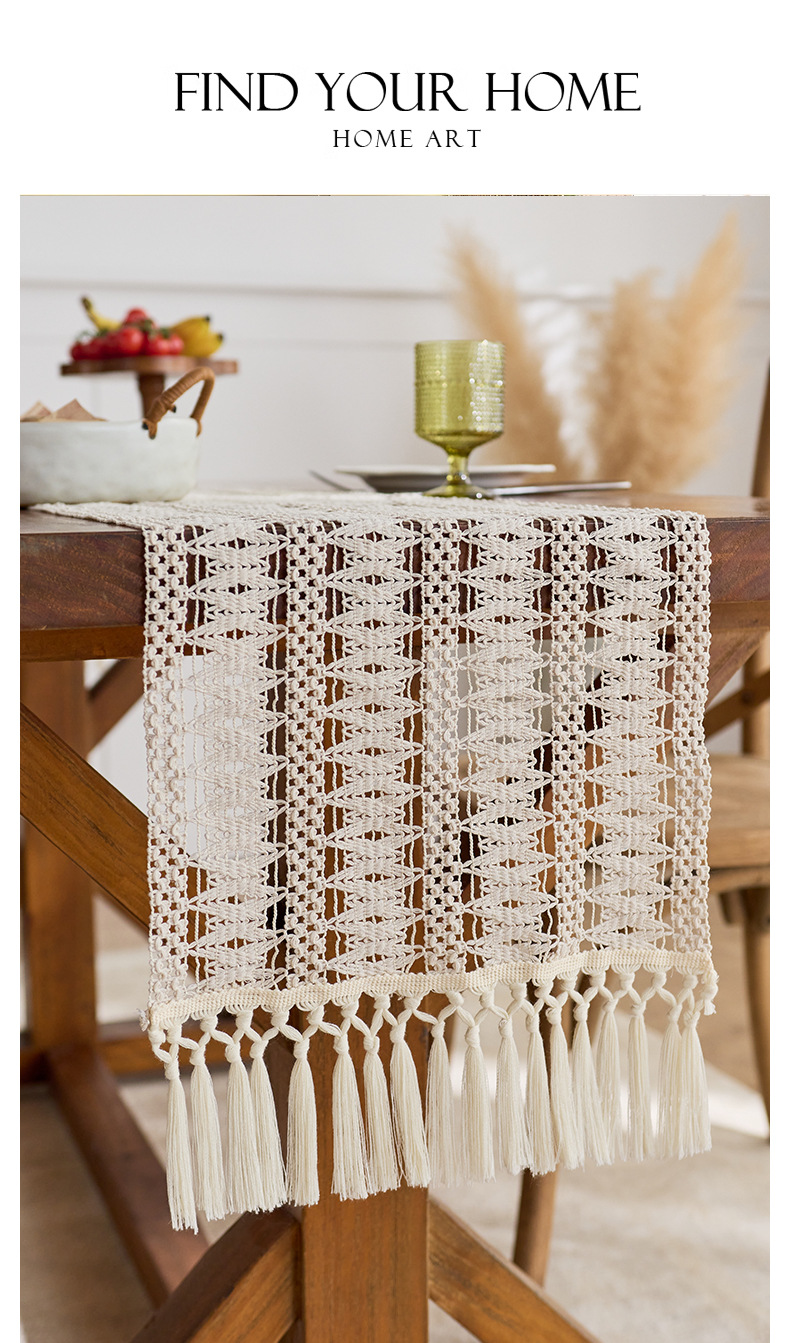 跨境桌旗亚马逊temu热销桌旗桌巾钩针编织流苏桌旗餐桌装饰代发