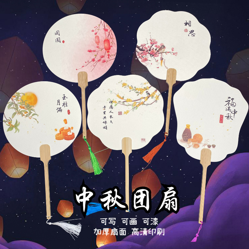 中秋節扇子、国民風書道扇子、屋台扇子、DIY扇子、水拓絵漆扇子、古代扇子、国民風扇子