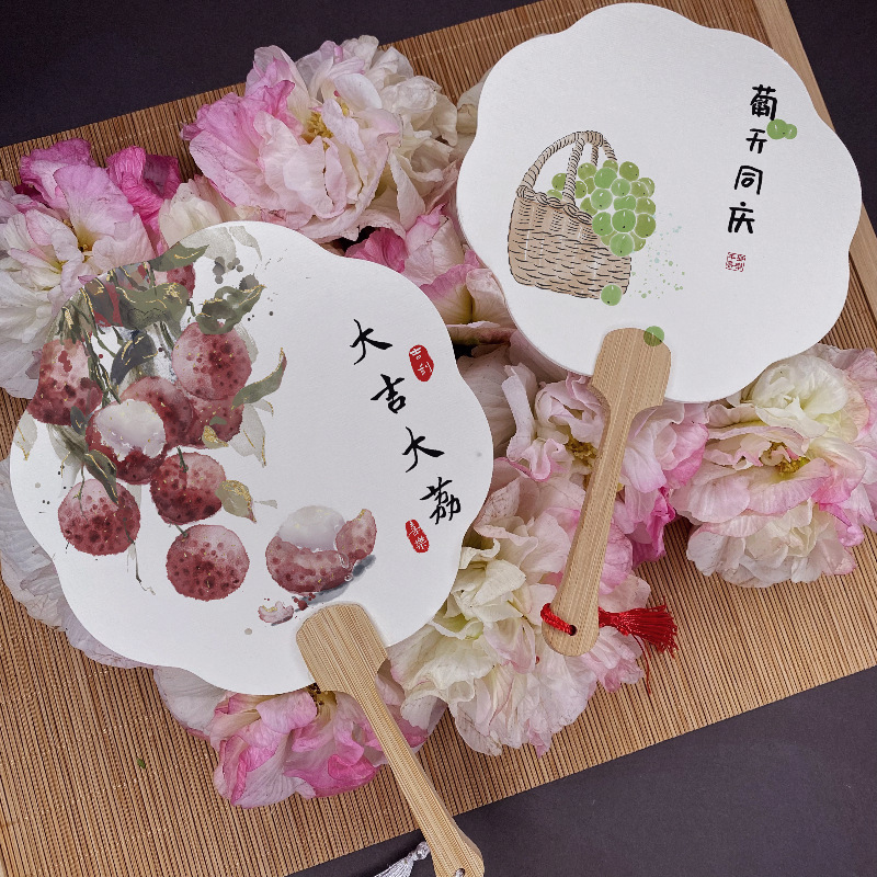 国潮団扇果物シリーズ文字金団扇帯字中国風書道文字古風水拓画扇子