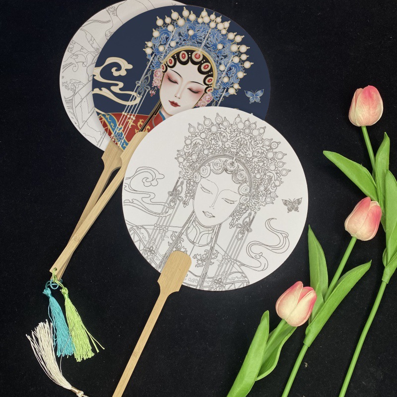 戯曲は色を埋めて国潮の団扇の線の原稿を描きます。