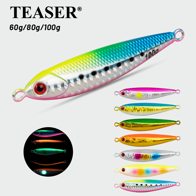 TEASER日式速沉夜光UV海钓铁板铅鱼假饵慢摇船钓铁板铅鱼路亚鱼饵