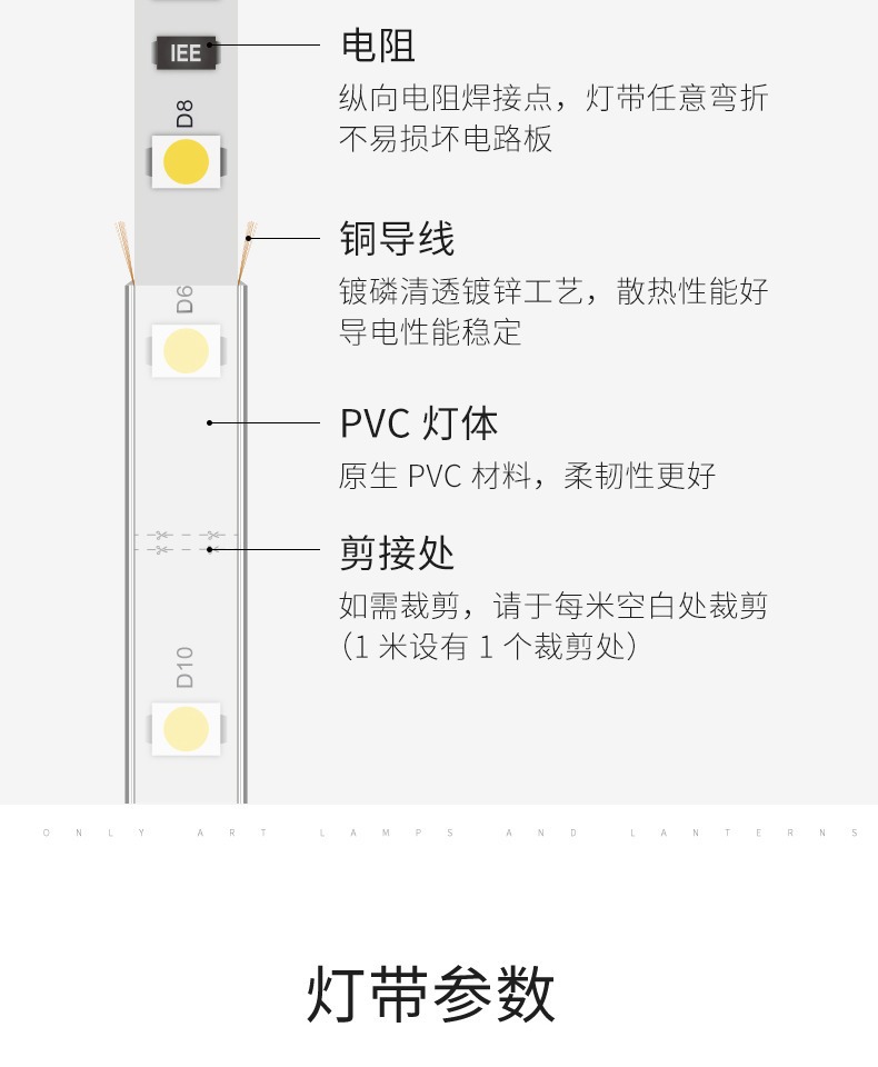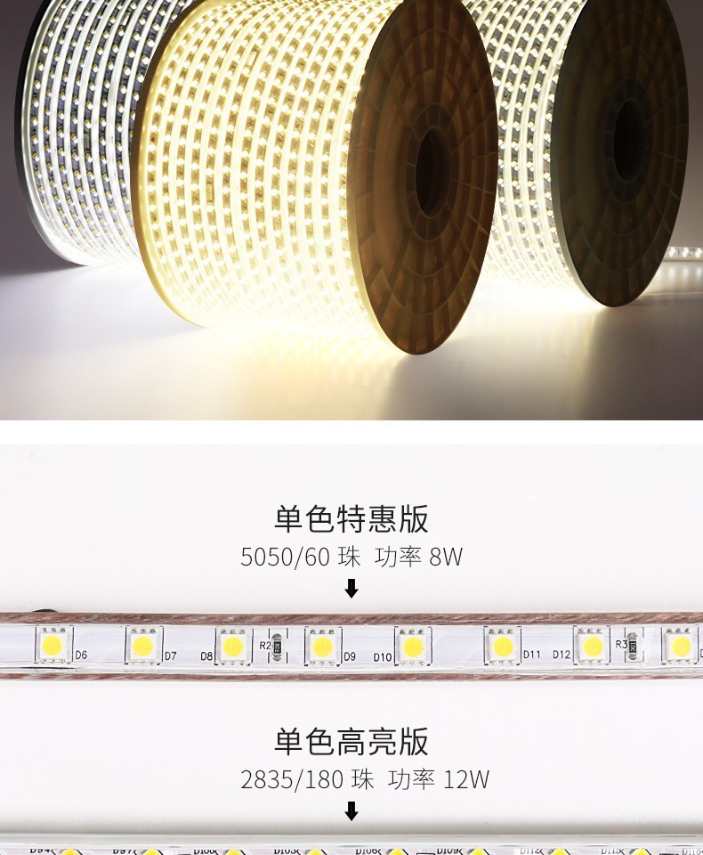 LEDランプビーズモデル 5050 (60 ビーズ 8W 温黄色光)、5050 (60 ビーズ 8W 温白色光)、5050 (60 ビーズ 8W 白色光)、2835 3 列