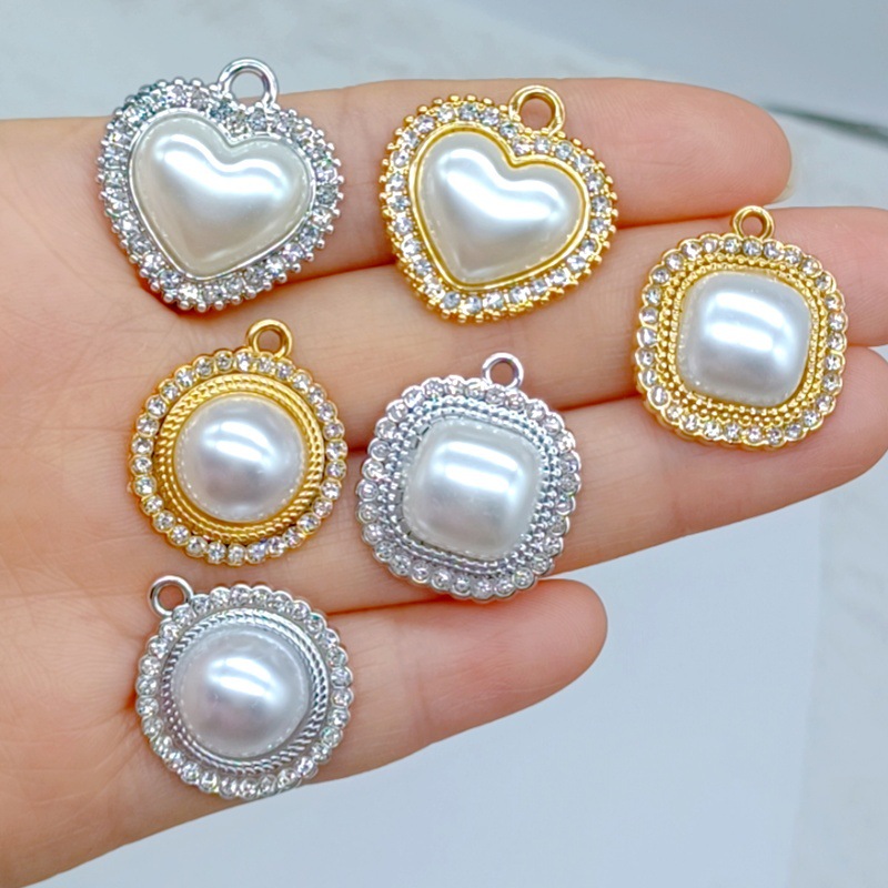小香風合金に真珠ボタンDIY高級服装の手縫いボタンを入れるシンプルな高足ニットの装飾ボタン