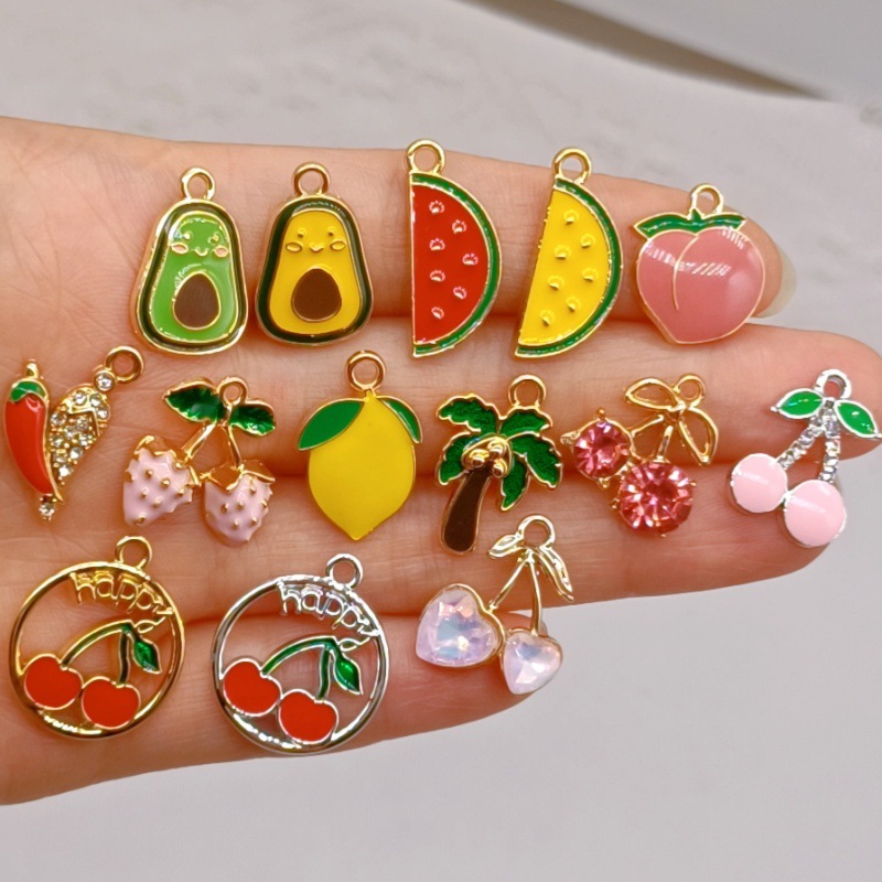 1 新しいカラフルなオイルドリップ合金チェリーアボカドペンダントペンダント diy ブレスレットネックレスジュエリーアクセサリー