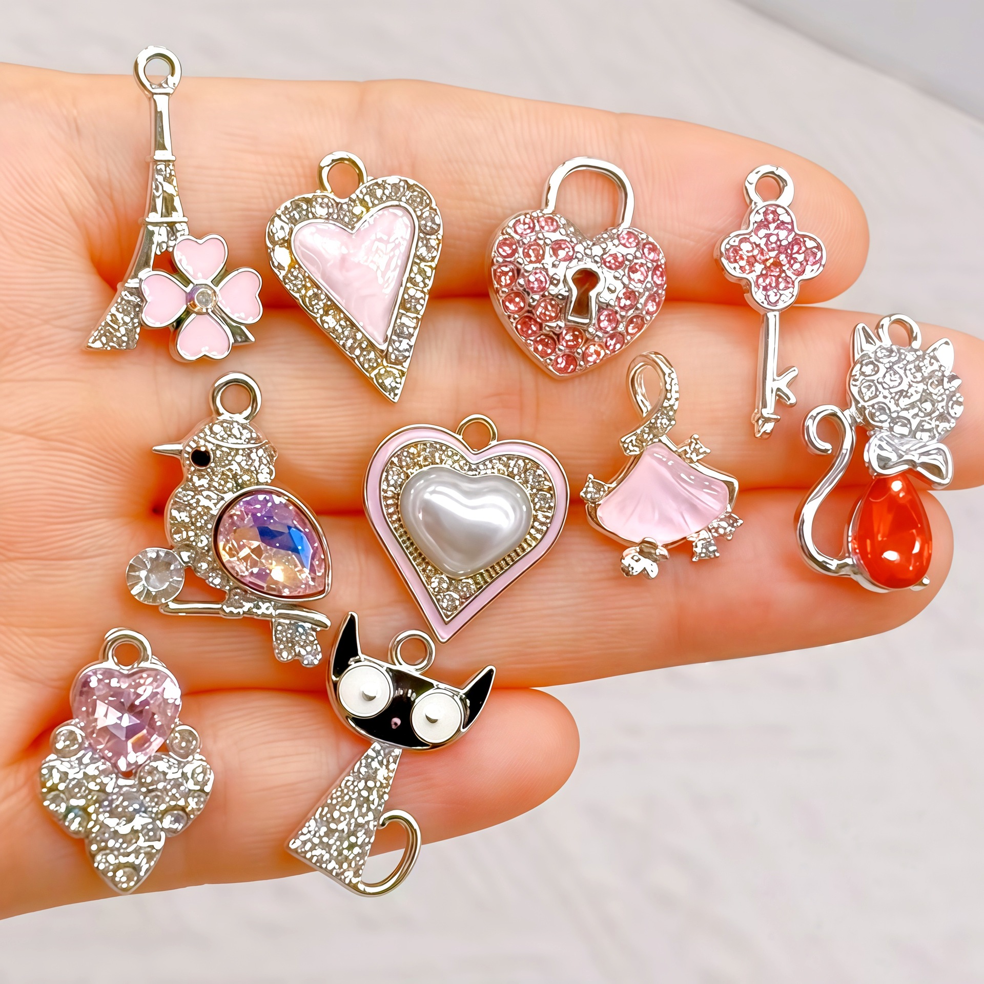 合金镶嵌水钻猫咪小熊吊坠DIY手链项链耳环服饰包包饰品配件挂件