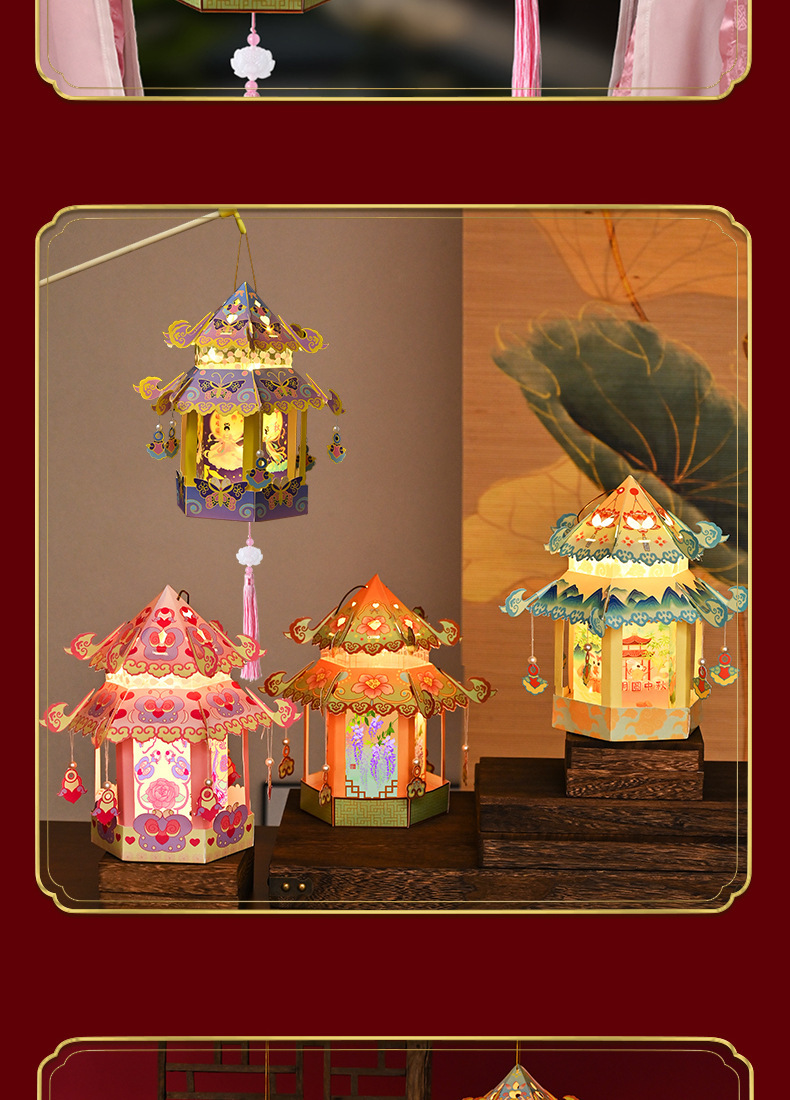 中秋節のランタンは光ってエレガントで、子供用手持ちのアンティークランタン、手作りのDIY素材パッケージ、紙のランタン、小さな宮殿のランタンです。