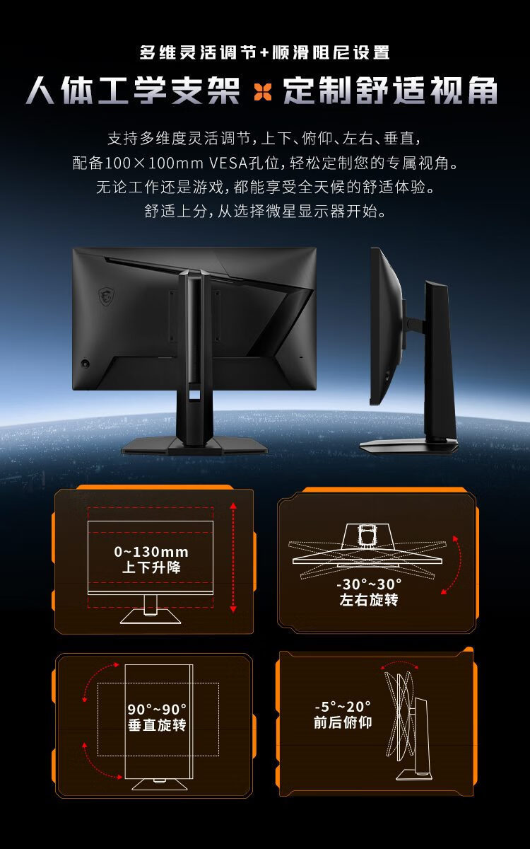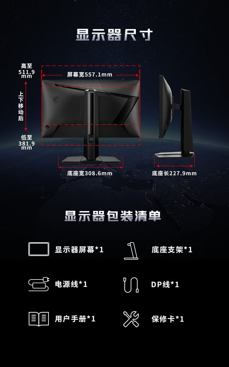 尺寸 MAG 255PXF 24.5寸ips 1k 300hz内置音箱 升降旋转,MAG 255XF 24.5寸ips 1k 300hz,MAG 255XFV 24.5寸 VA 1k 250hz