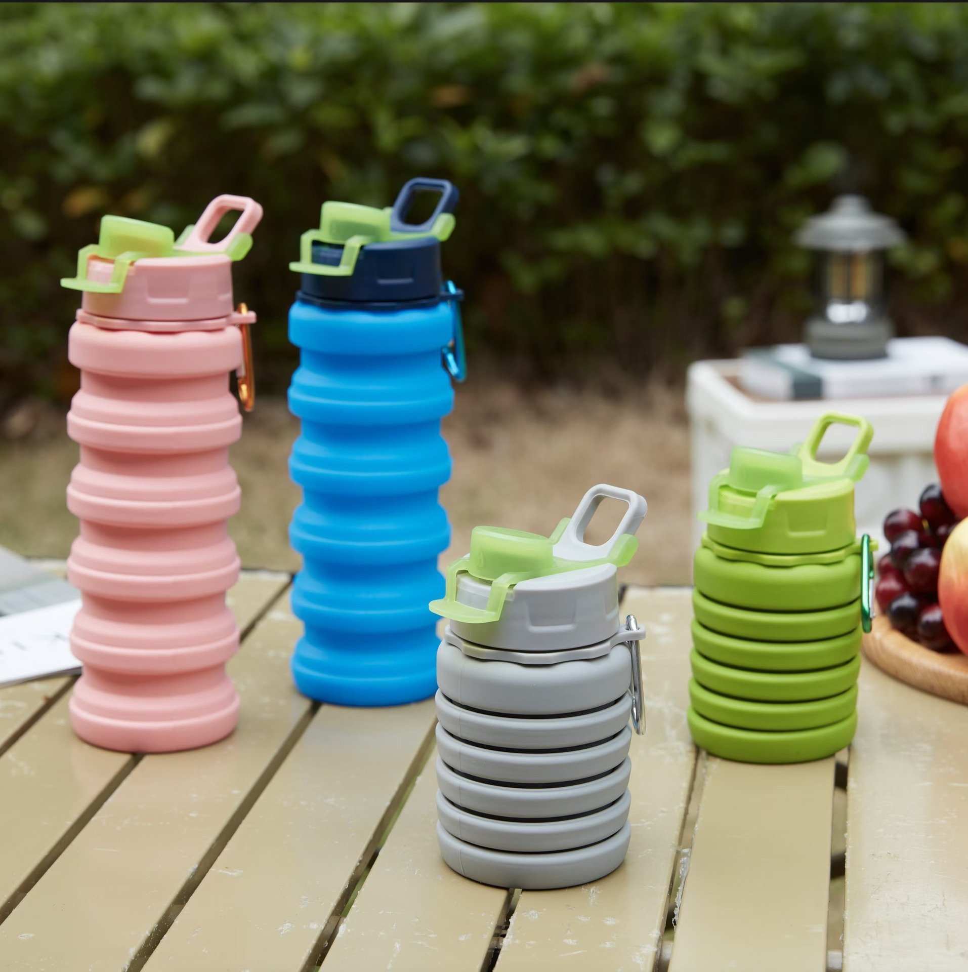 国境を越えた売れ筋シリコンアウトドアスポーツウォーターボトルポータブル折りたたみ式魚口蓋ウォーターボトル500ml伸縮式ウォーターカップ