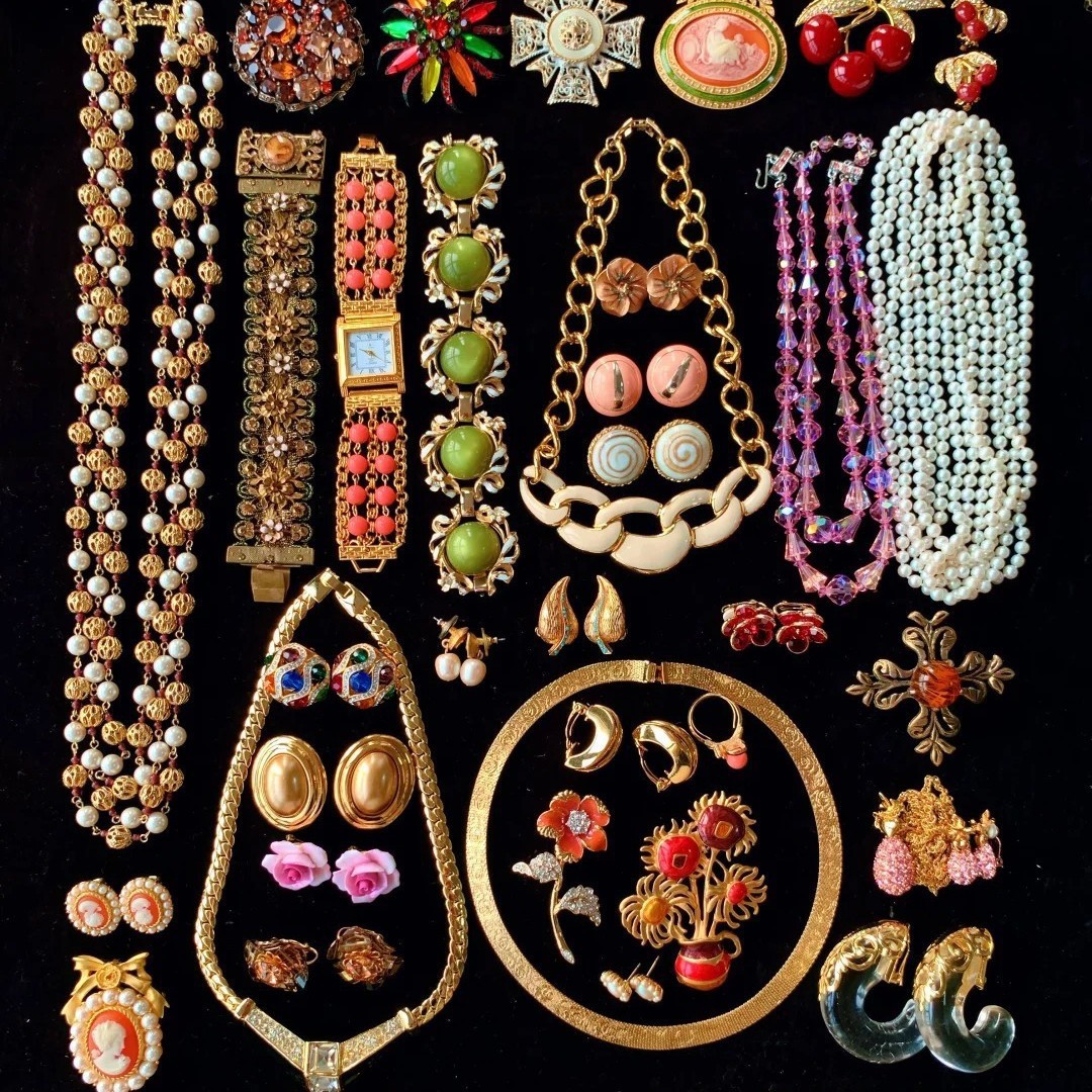 中古vintage珍珠圆形耳环项链复古高级感毛衣链精致小众首饰套装