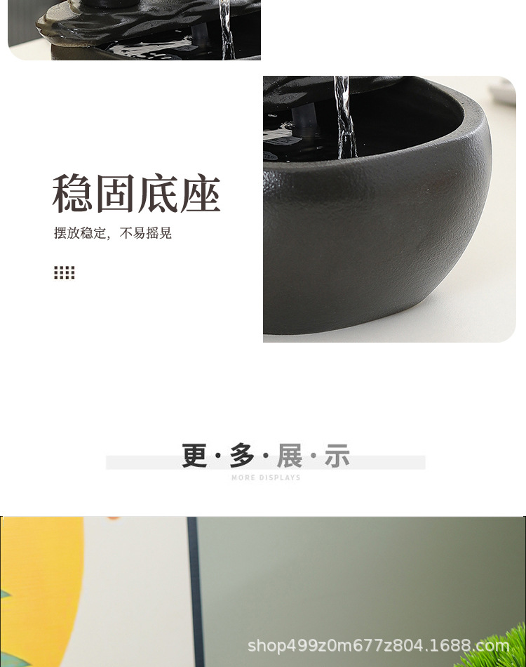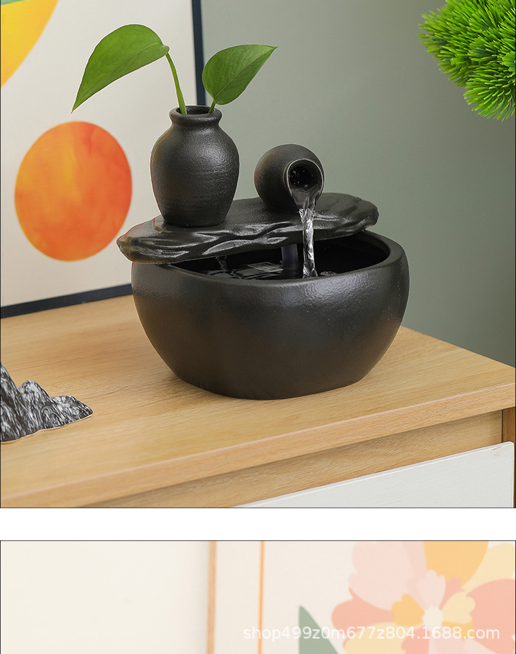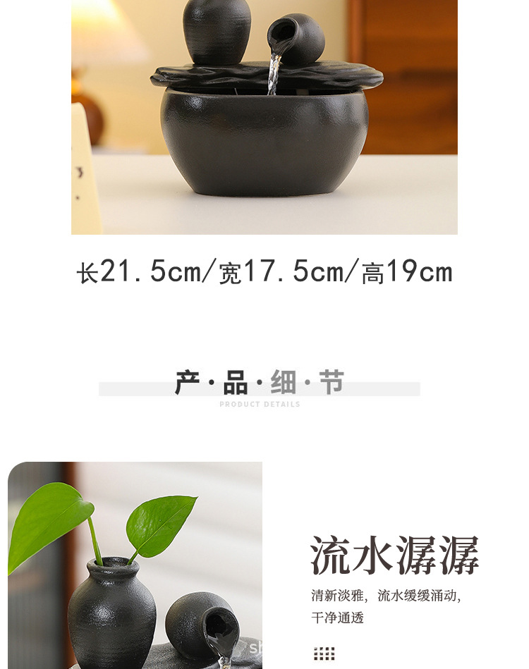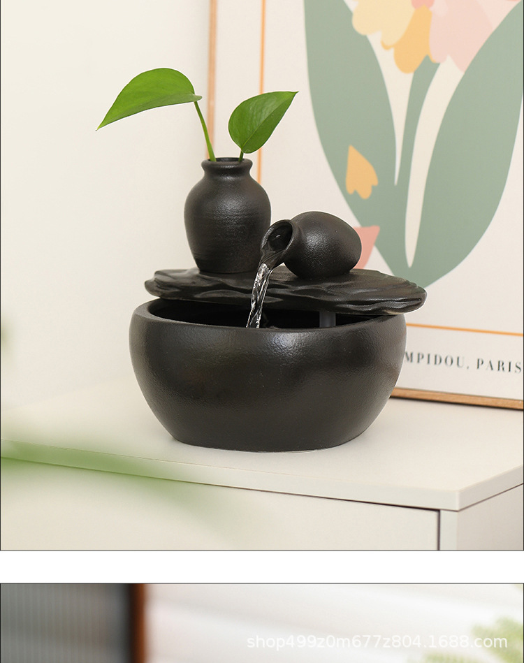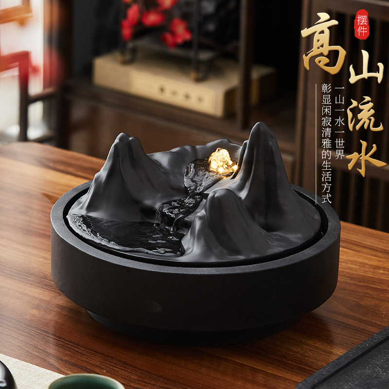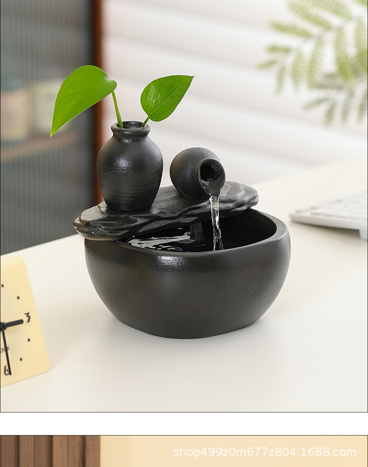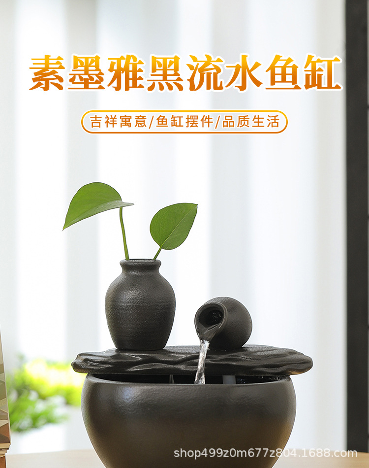 ブラックセラミック水槽流水装飾品小型流水装置リビングルーム循環水加湿オフィスデスクトップ装飾