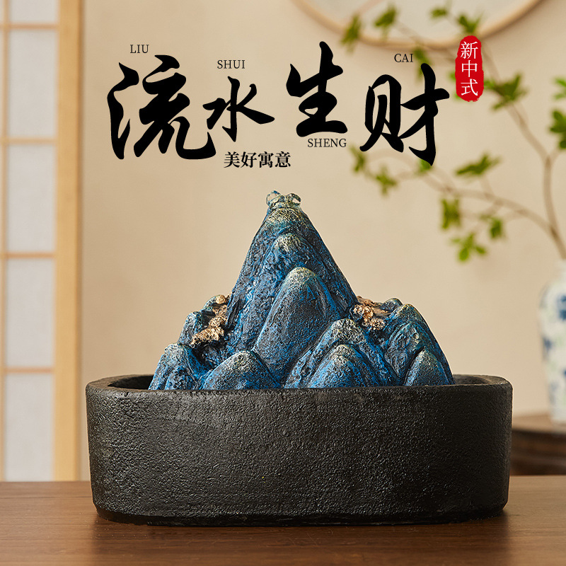 新天泉招財流水置物循環水オフィスリビングデスクトップ置物フロント招財装飾移転礼