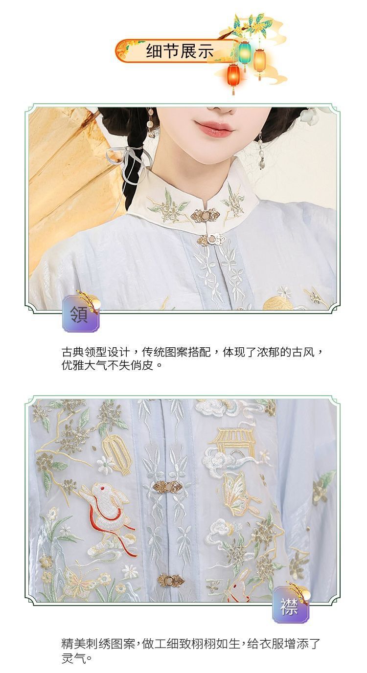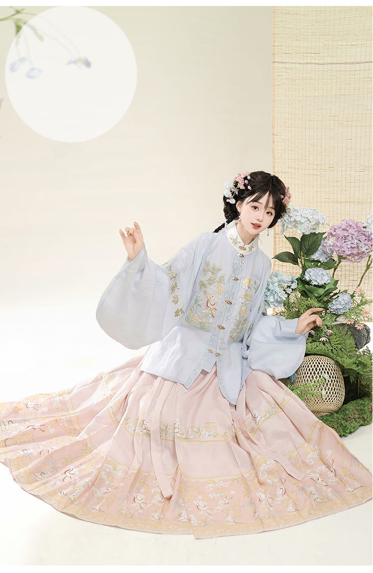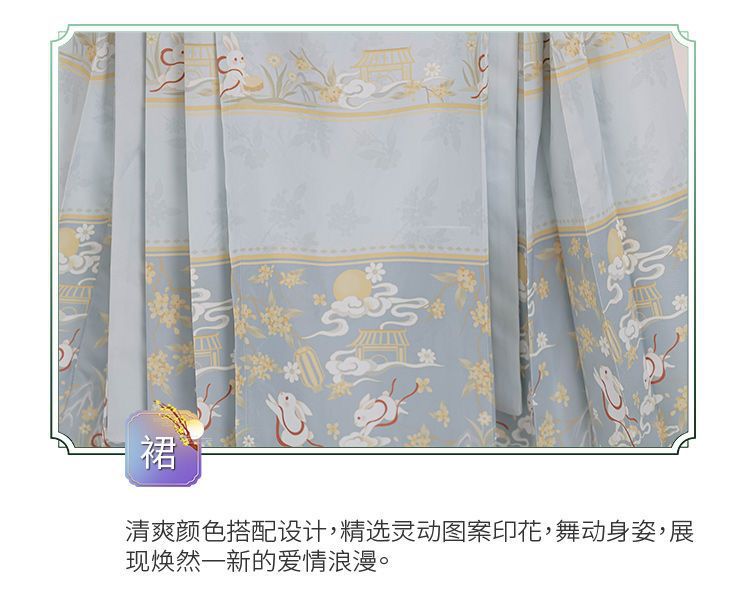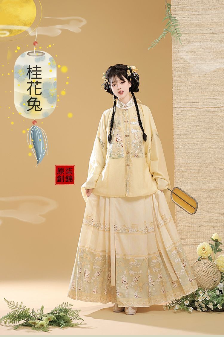 大人漢服【桂花兎】明製立襟刺繍補服琵琶袖馬面スカート春秋セット