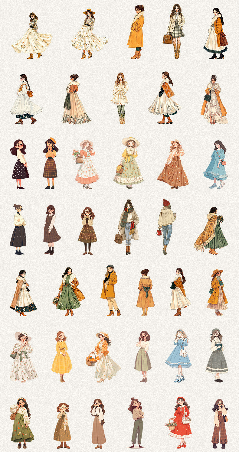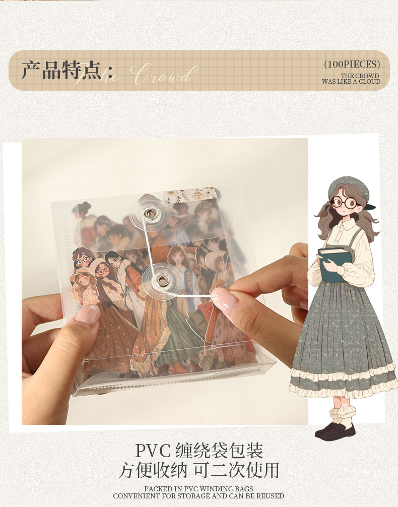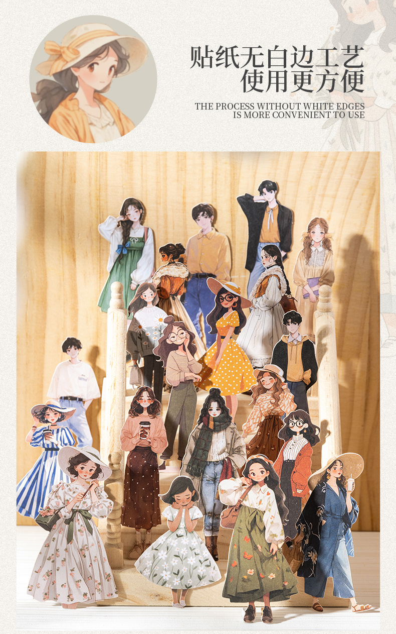 番茄酱少女线圈贴纸本 橘子味的少女 人物素材手账diy造景拼贴纸
