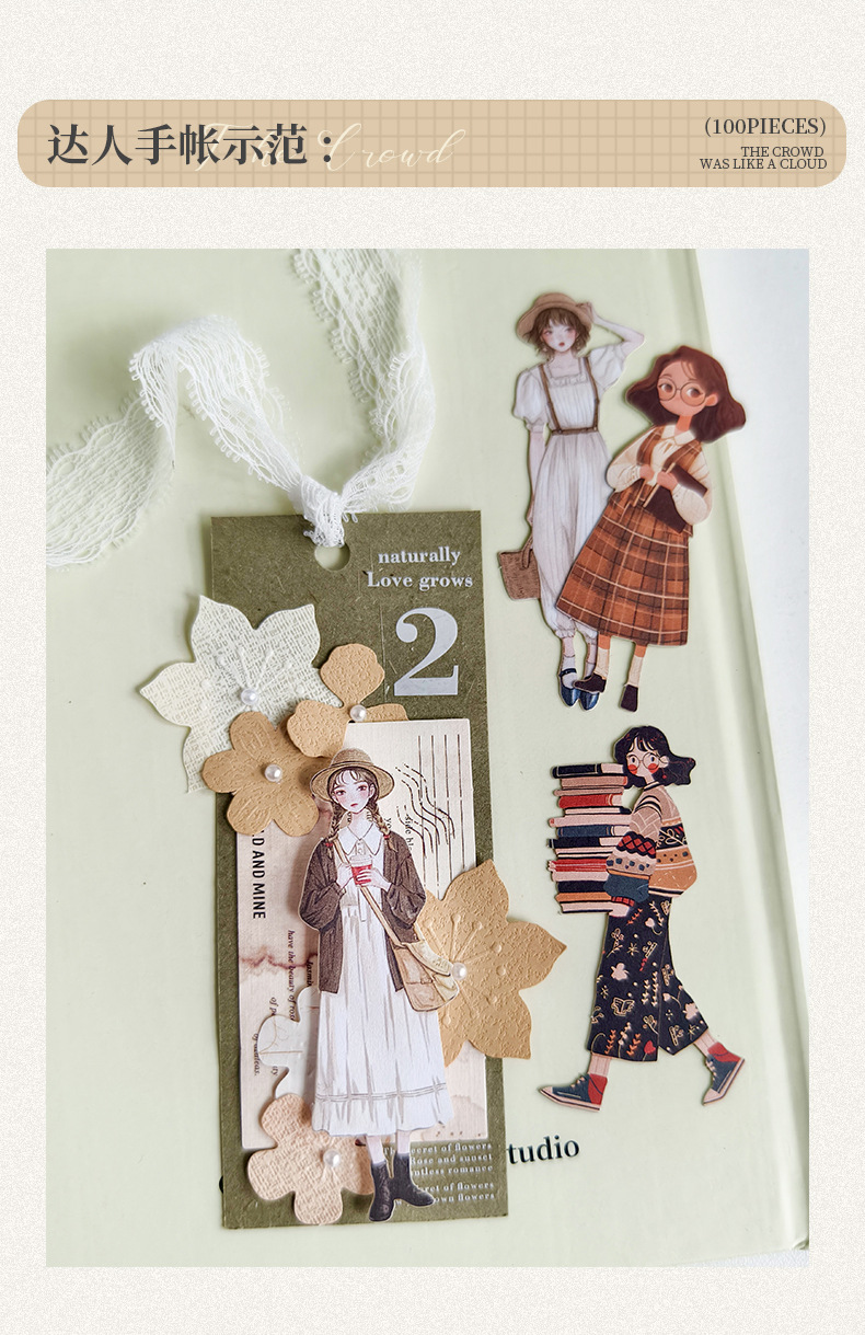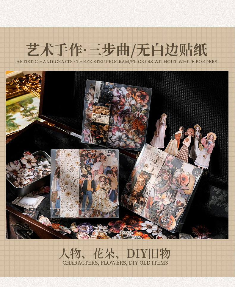 ケチャップガールが開花期シリーズを書くライトレトロハンドブックDIY装飾デュアル素材抜き型素材ステッカーブック