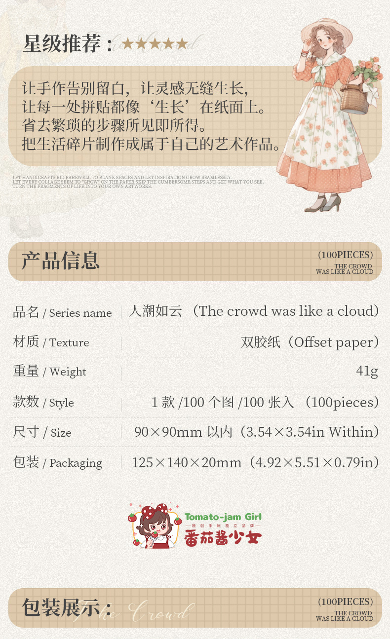 トマトソースガールレトロフラワーテーマ大容量ハードカードステッカーフラワーキングダムシリーズハンドブック素材装飾