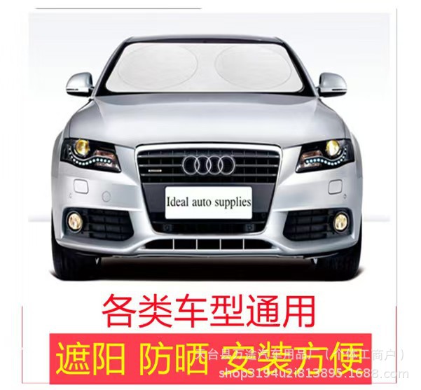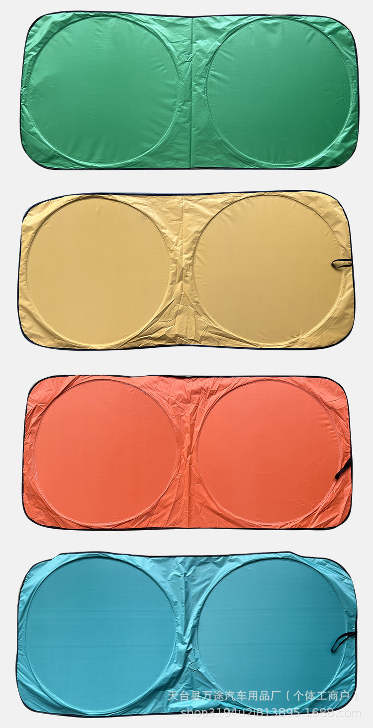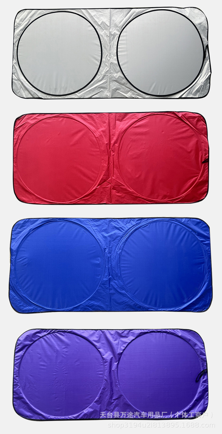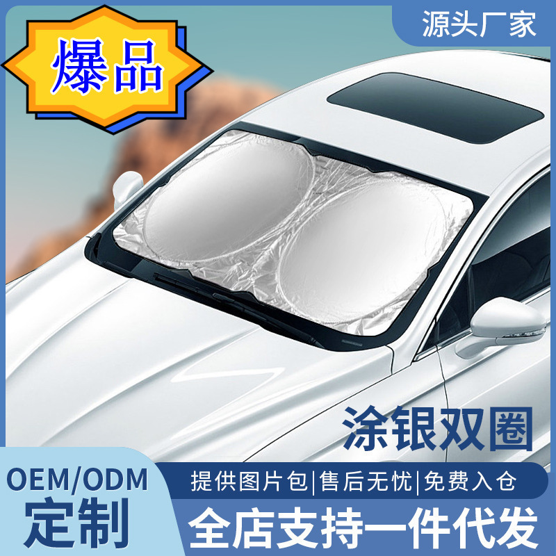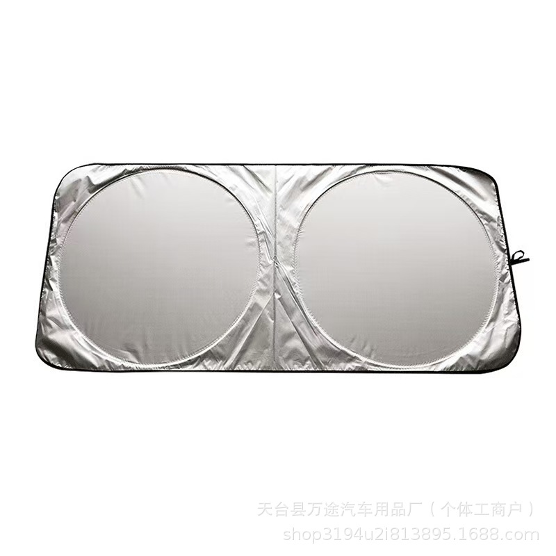 跨境汽车遮阳挡夏季防晒遮阳隔热挡涂银双圈遮阳帘可折叠遮阳挡