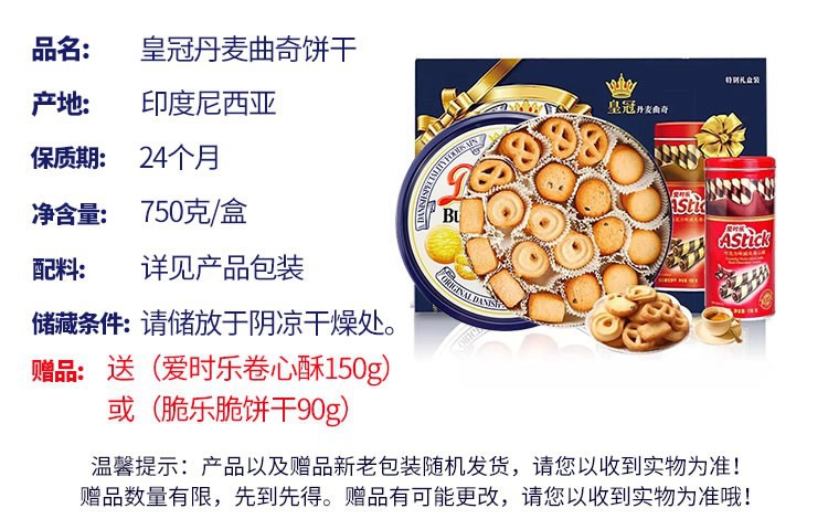 皇冠世家丹麦风味曲奇饼干奶香礼盒装年货送礼休闲零食品喜饼批发
