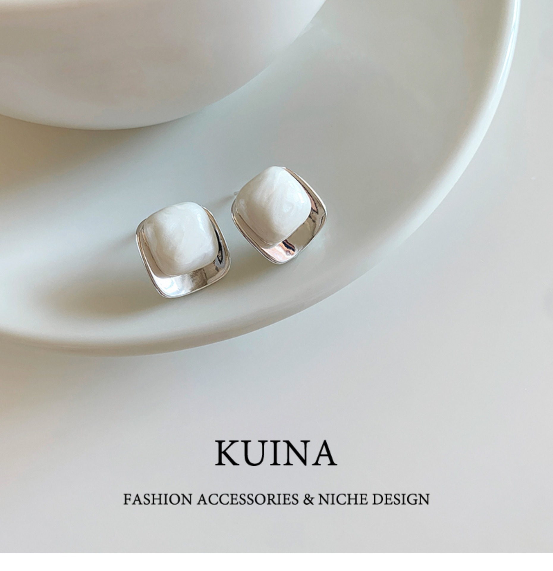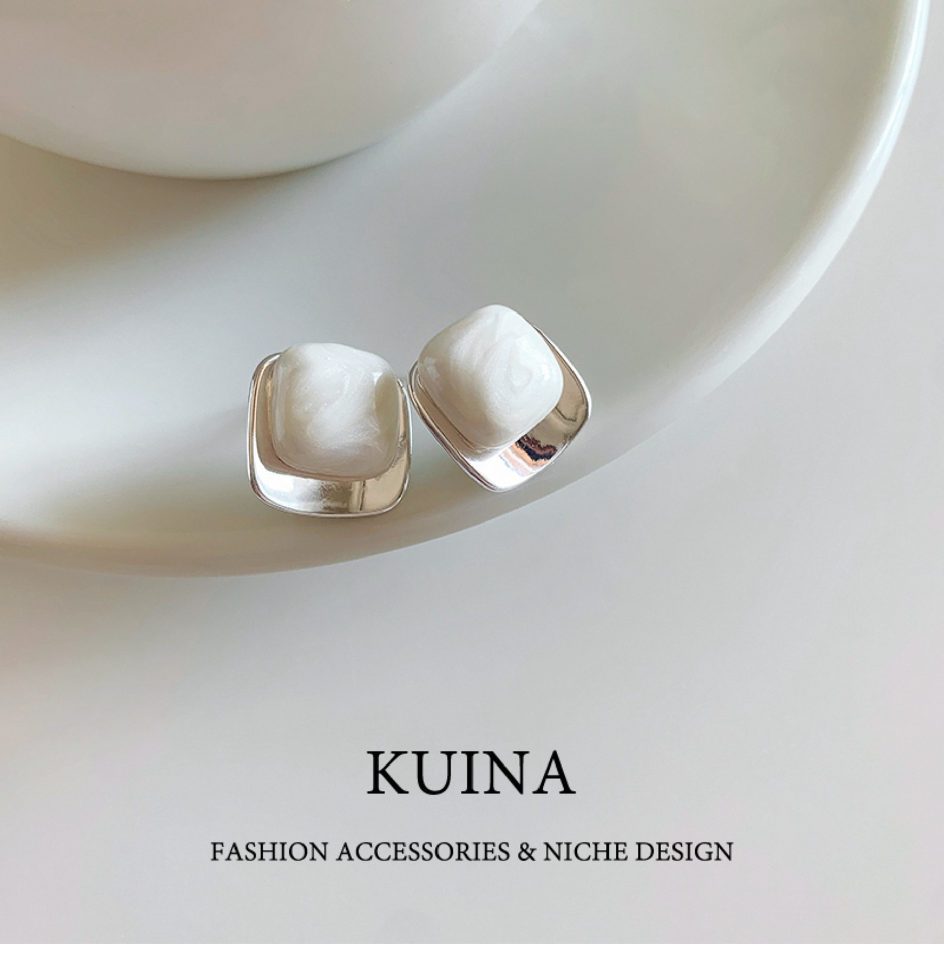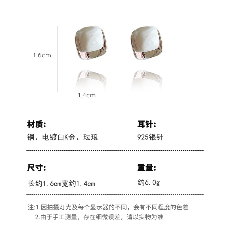 レトロスクエアエナメルイヤリング女性のスターリングシルバー針メタルコントラストイヤリング 2025 新しいハイエンドのユニークな耳のアクセサリー