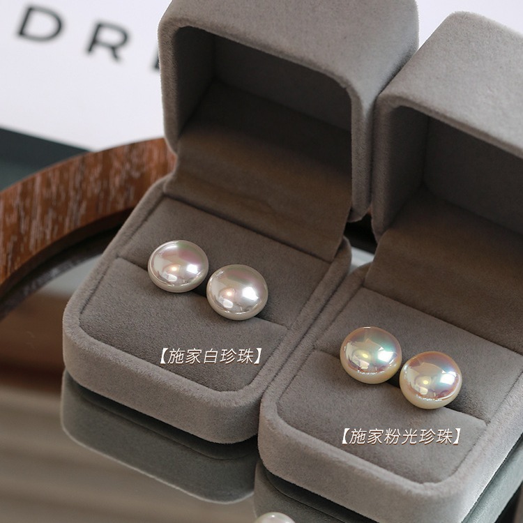 999純銀ピアス女性施家真珠マントー玉イヤリング平円高級気質フランス復古軽贅沢耳飾り