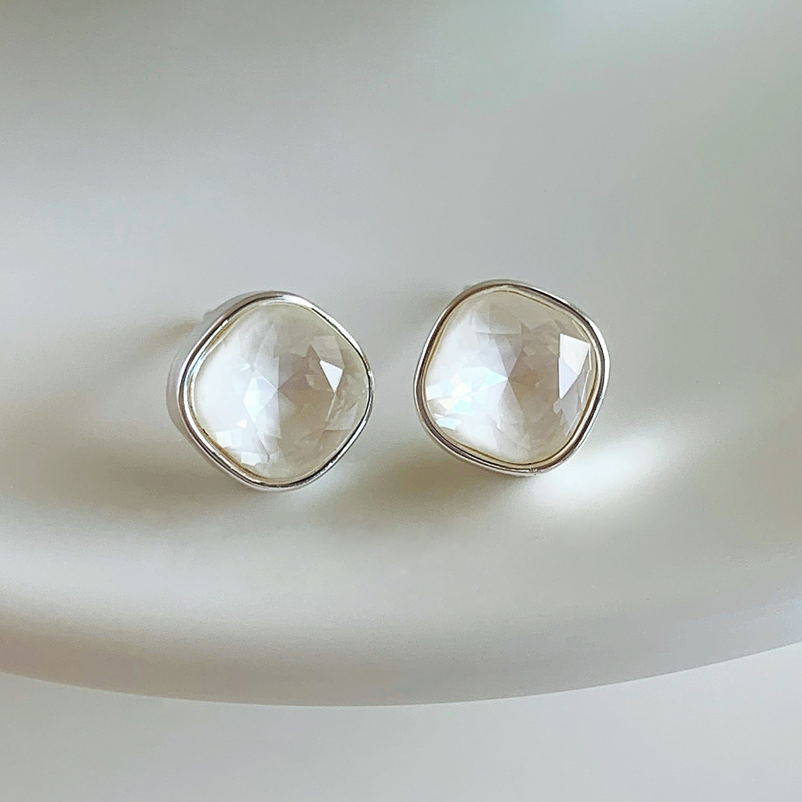 方形水晶耳钉女小众轻奢百搭耳环精致高级感气质纯银针独特耳饰品