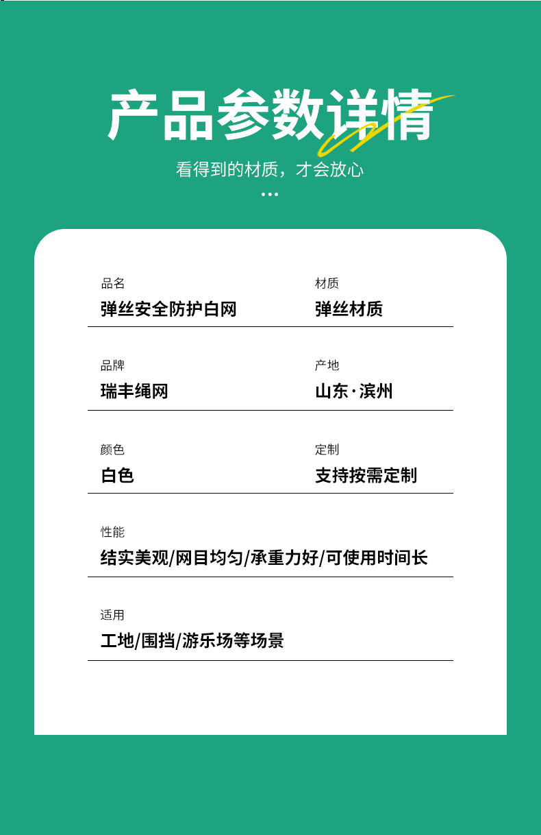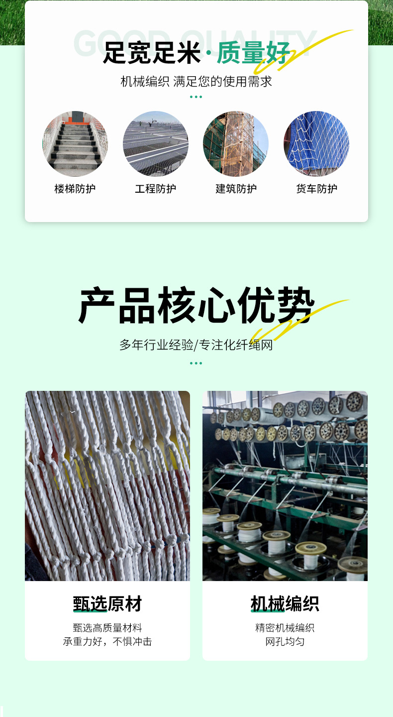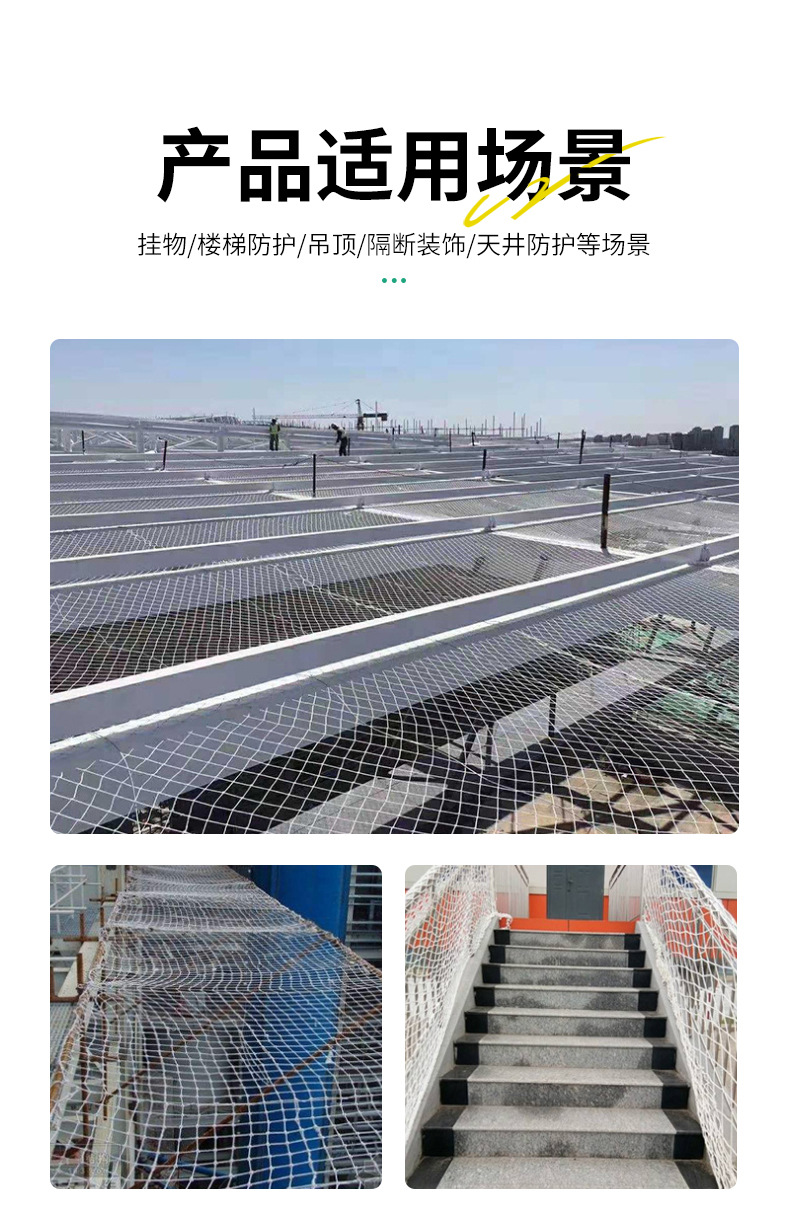 弾性シルク安全保護白ネット建設現場の白い安全落下防止ネットは、さまざまなシナリオに適しており、耐荷重性に優れています。