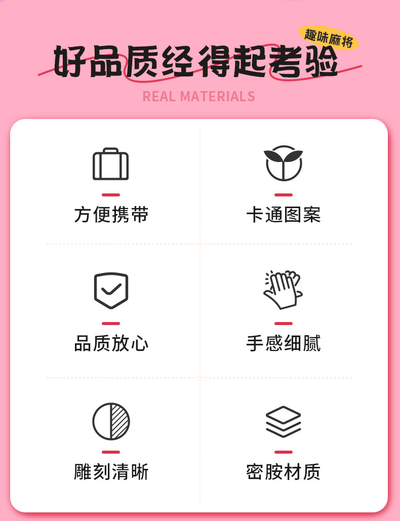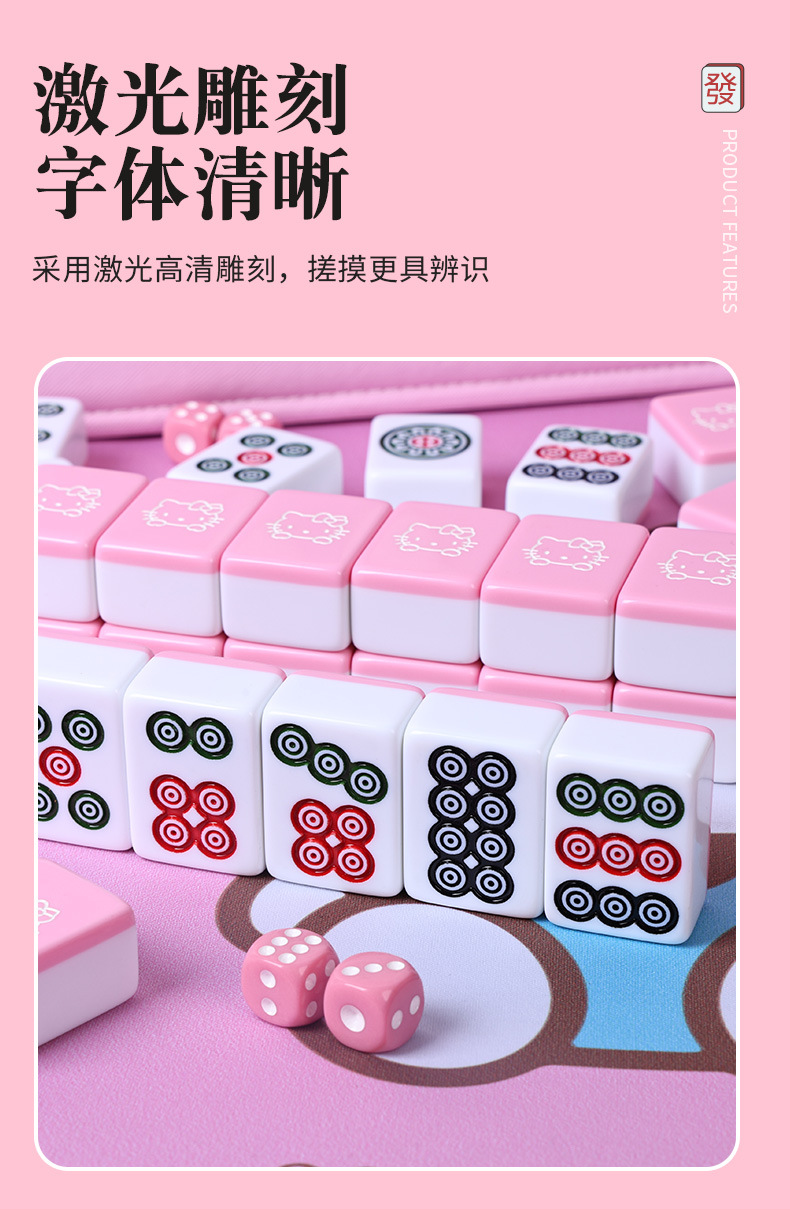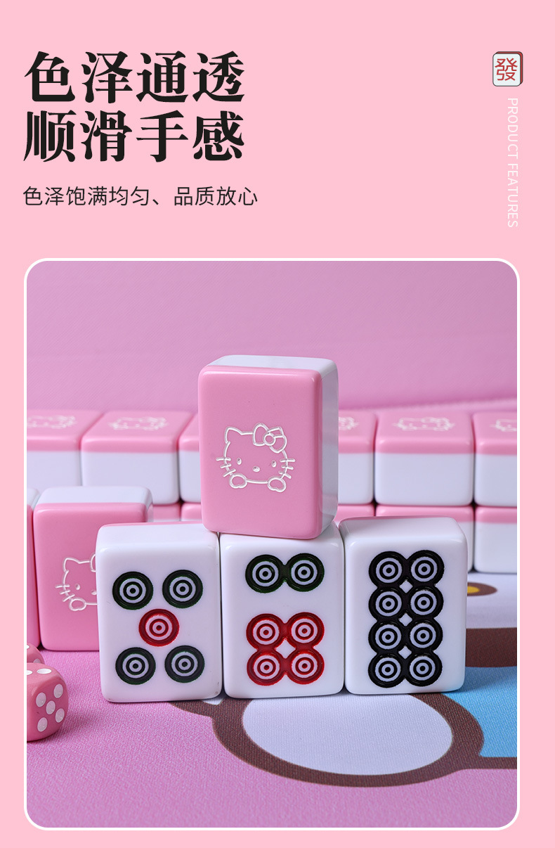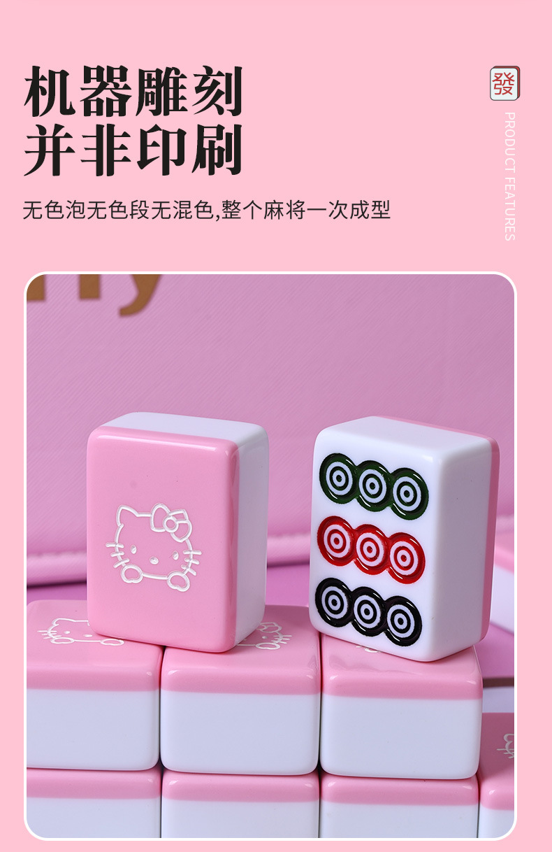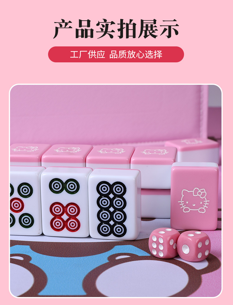 粉色可爱美乐蒂卡通家用手搓麻将牌送礼品定 制个性麻将中大号